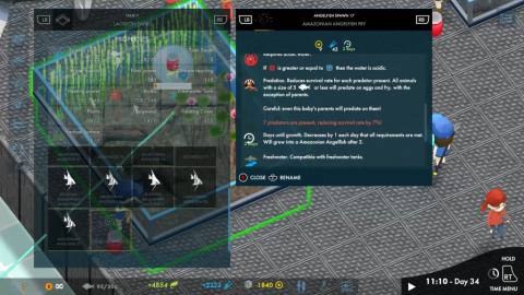 You’ll be able to spread this knowledge to the people who visit your aquarium, too. There are a number of new accessories added with Freshwater Frenzy, one of those being posters that can teach your visitors facts, and also be a little bit of fun. Their value relies on the contents of the connected tank, so make sure you design your exhibits carefully! The other accessories coming to Megaquarium in Freshwater Frenzy are a backpack which doubles the food carrying capacity of the staff member, sneakers which increases the speed of the wearer, a feeding stick which increases the feeding skill of the user, or a tool belt which adds a boost to the fixing skill of the wearer. Be warned though – they can only be assigned one at a time!