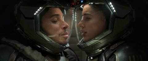 The only reason Andy signed up to mine asteroids light years away from home is because of [redacted trauma spoiler]. His memories of the past are constantly at odds with the immediate terror of the moment, and while Long Distance isn’t exactly Solaris, Ramos’ Tom Hanks-esque everyman persona adds weight to the situation. The worker-for-hire is not an Andy Weir know-it-all, and his place on the corporate hierarchy threatens his life even after the crash: Partway through the movie, he discovers Naomi has a manager-level suit that patches its own holes, while his lowly miner suit leaves him completely expendable. This is the private company he’s hoping will send a rescue mission.