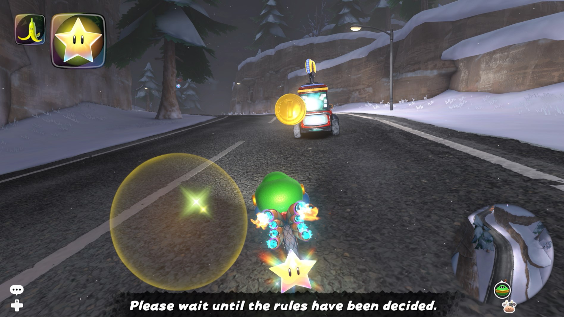 We found this little coin-dropping buggy looping around the DK Pass area in the Free Roam-like multiplayer lobby that we followed around to collect coins quickly: