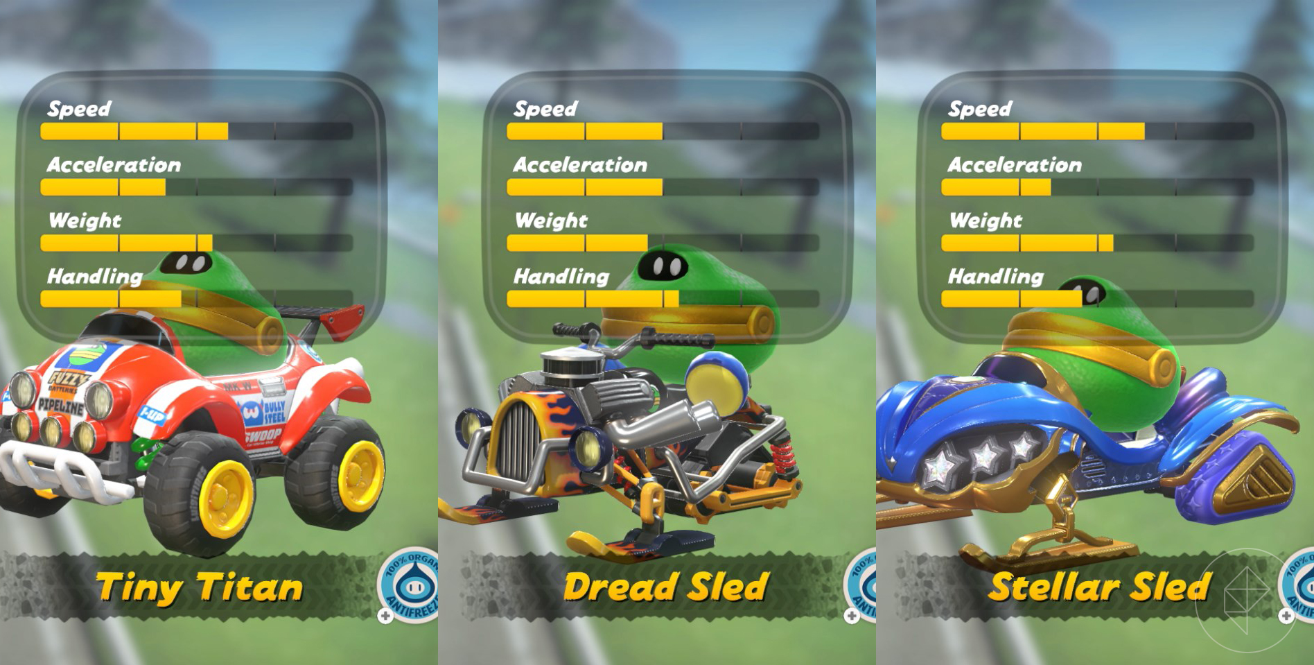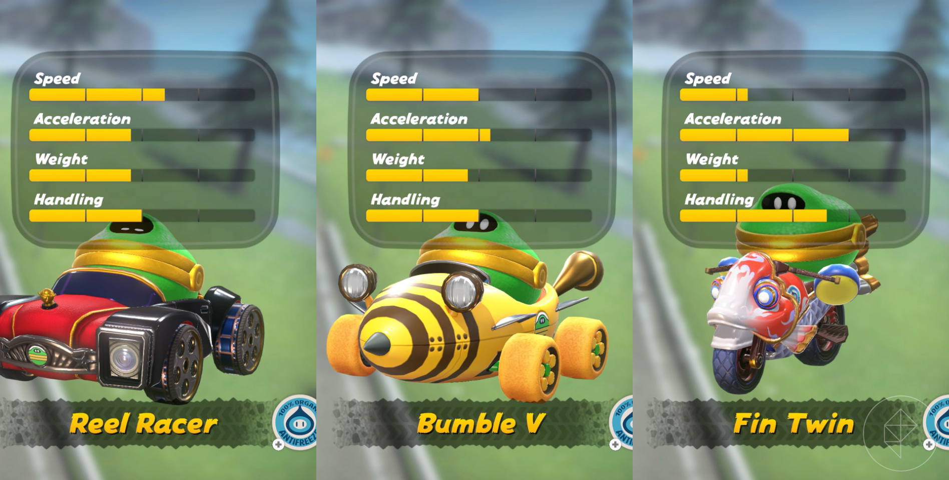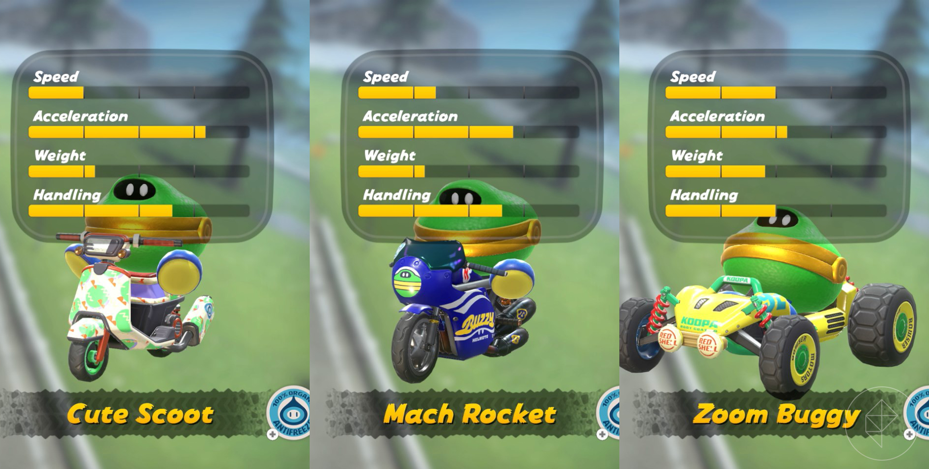 While these vehicles don’t have the customization that we saw in Mario Kart 8, they do still have individual stats, so it’s not all about just glitz and glam when it comes to picking a vehicle to drive. (Though, yes, some vehicles are just cuter and better than the others, trust me.)