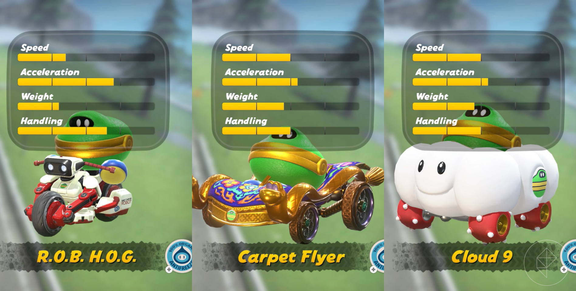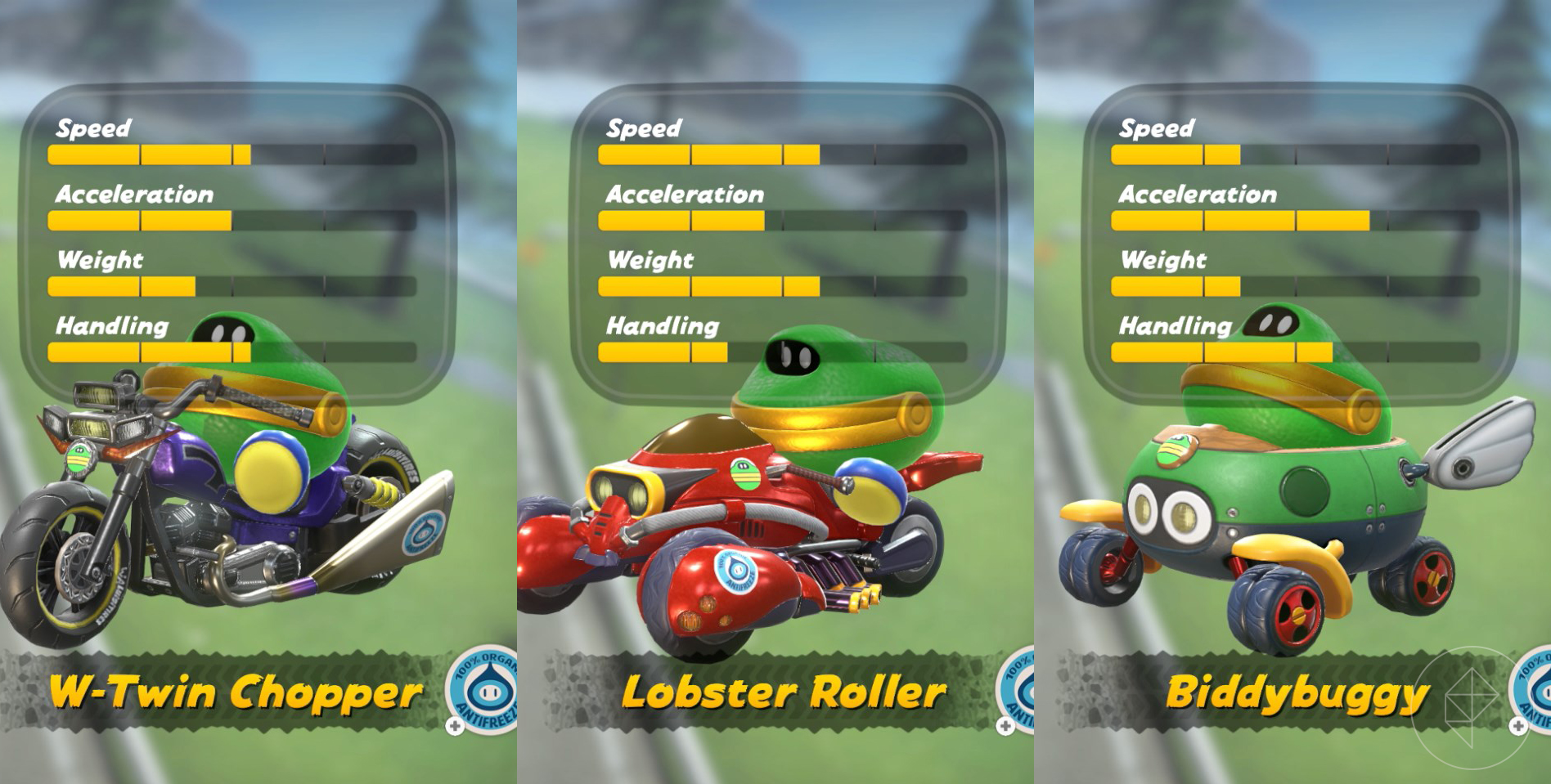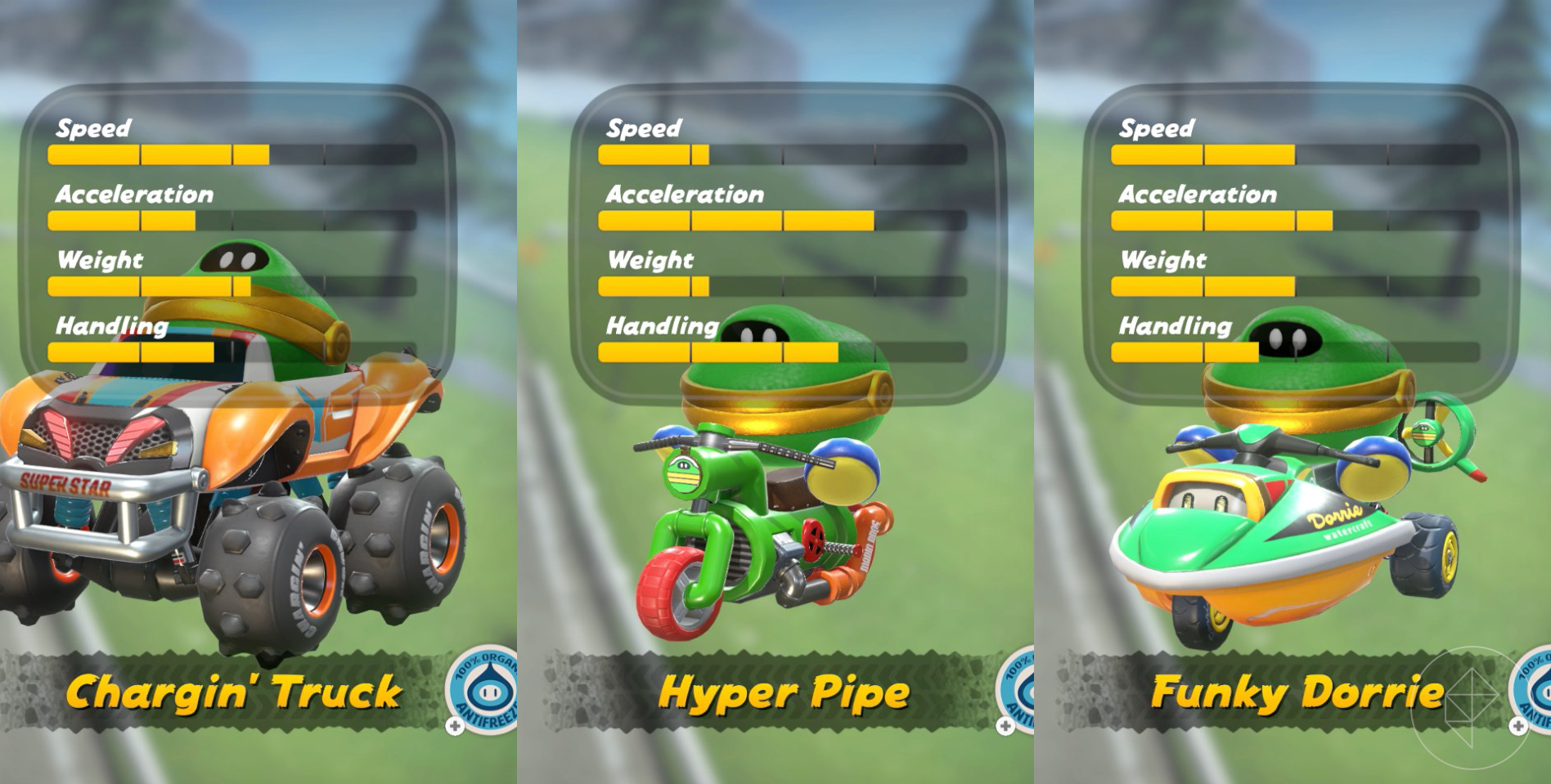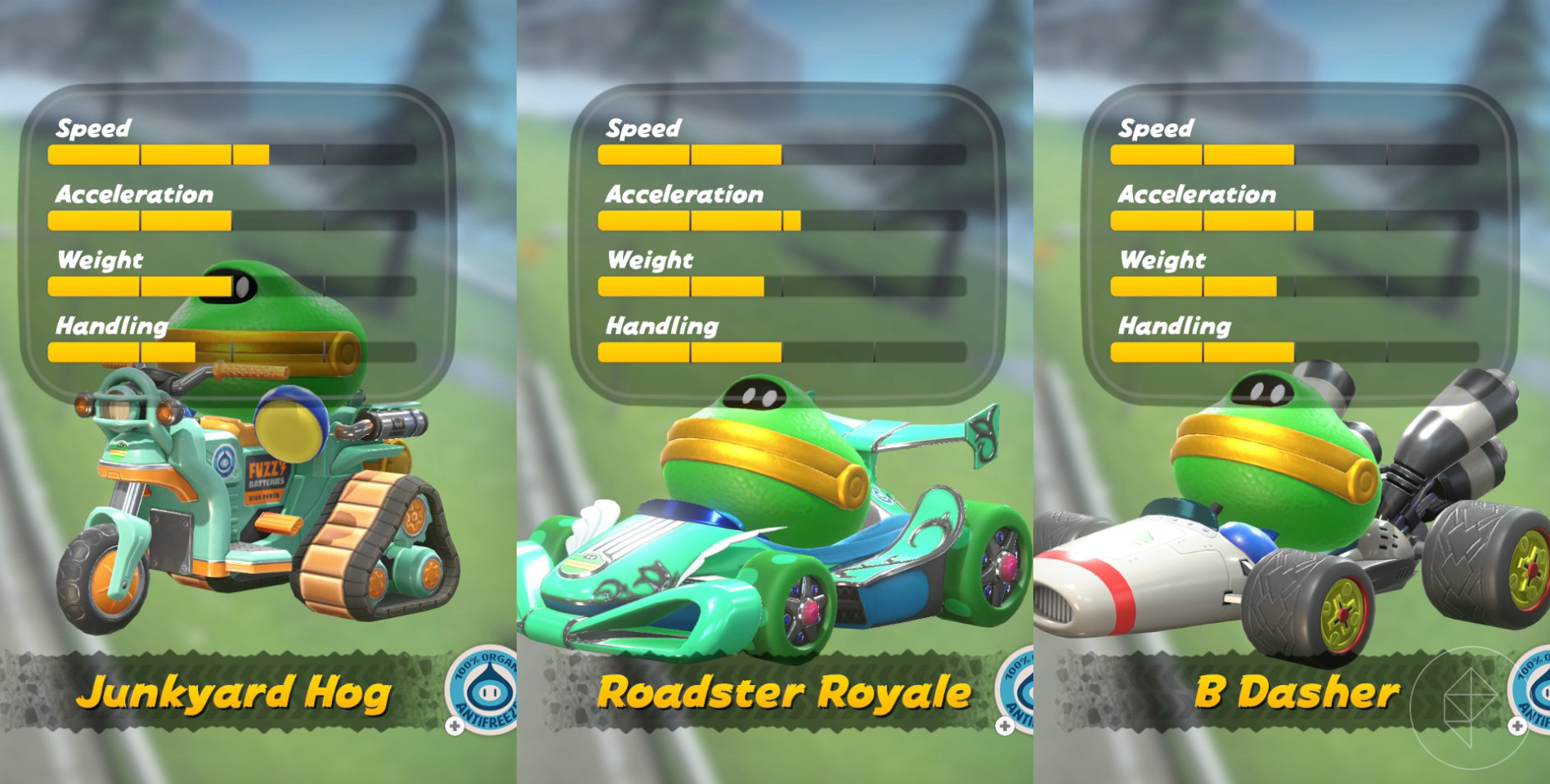 While these vehicles don’t have the customization that we saw in Mario Kart 8, they do still have individual stats, so it’s not all about just glitz and glam when it comes to picking a vehicle to drive. (Though, yes, some vehicles are just cuter and better than the others, trust me.)