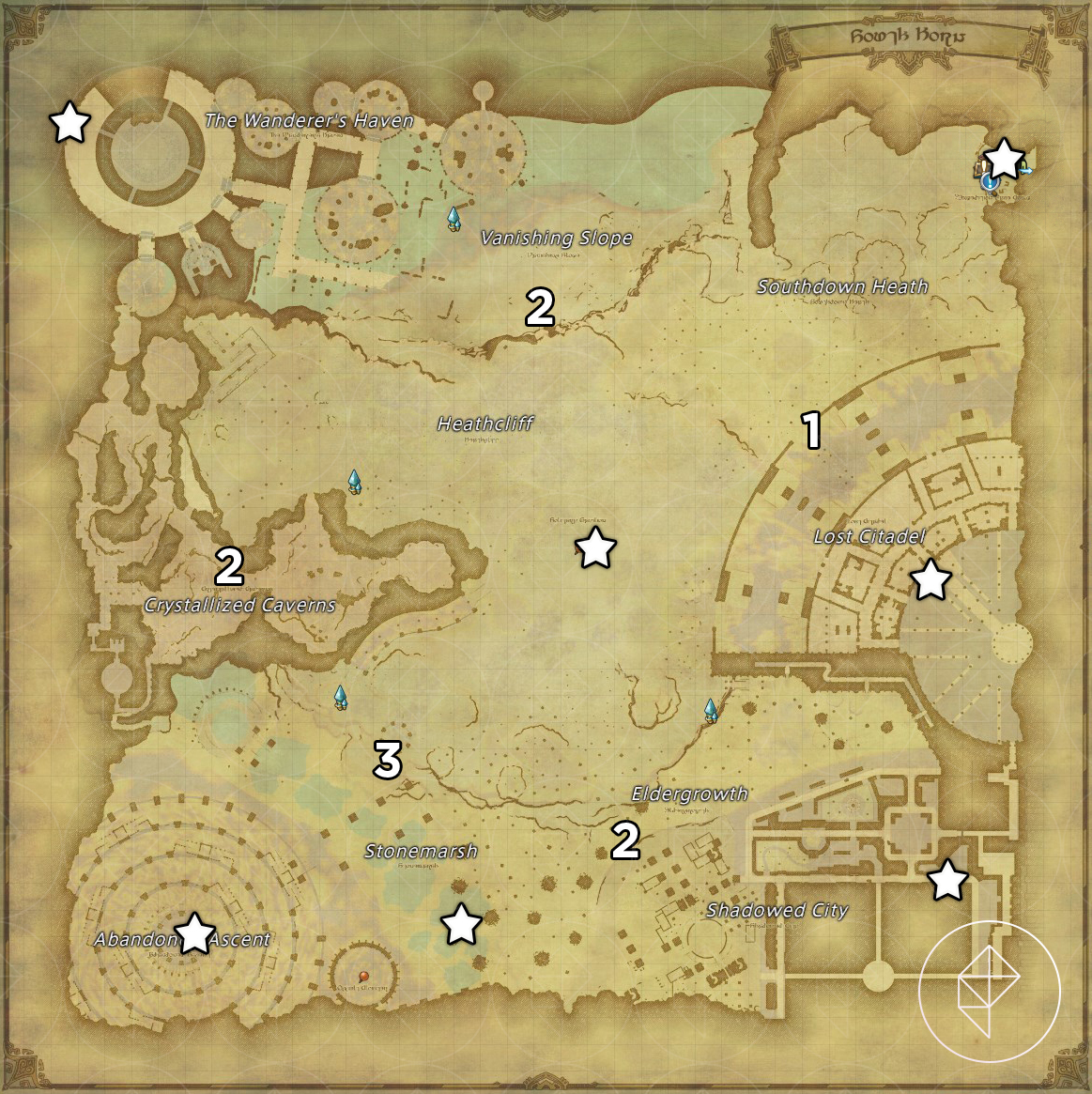 Below, you can see a map of the survey points that you can find glowing around the map in FFXIV’s Occult Crescent.