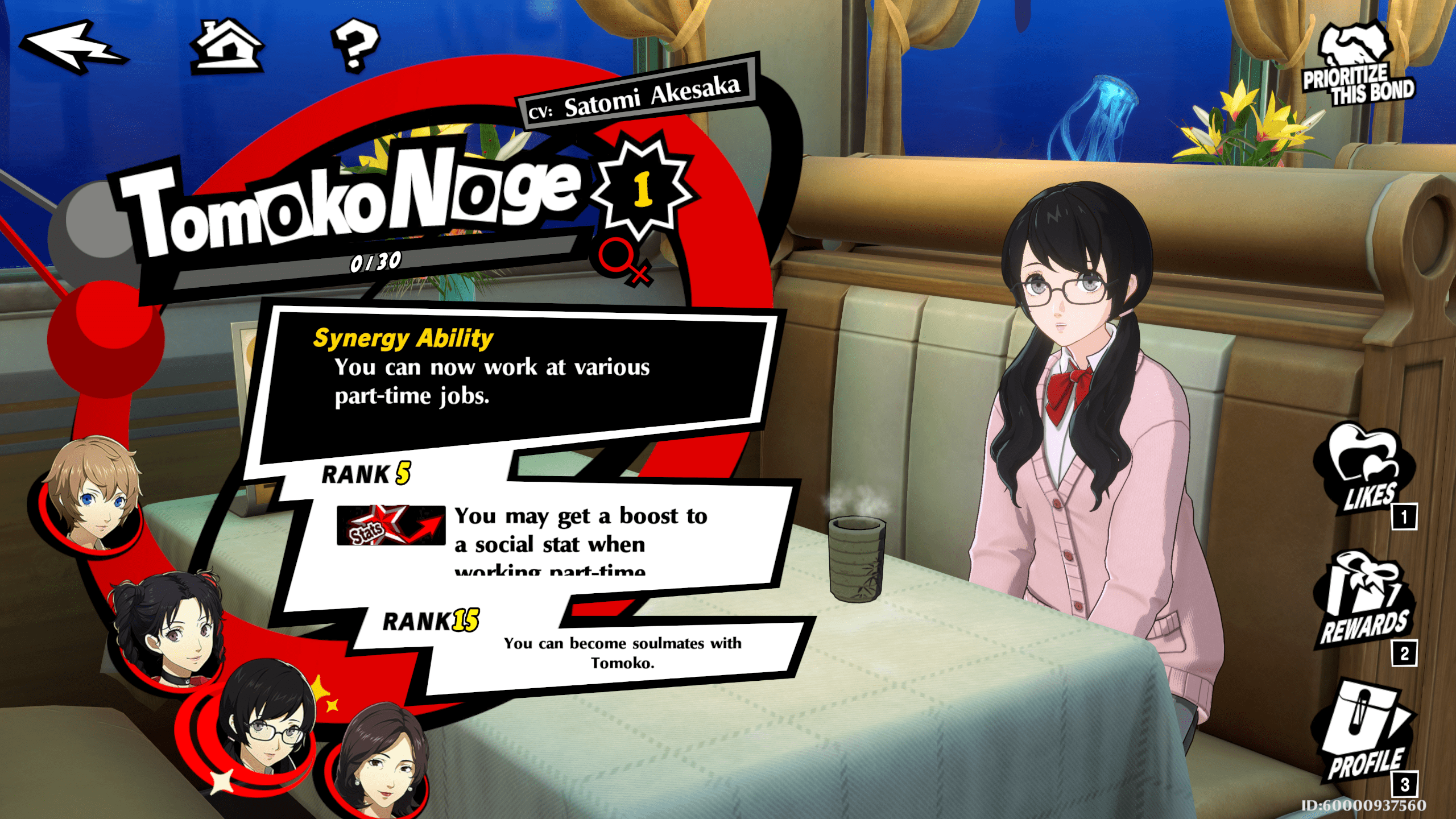Tomoko’s Synergy Bond is unlocked by completing the “Part-Time Dreamer” side mission. Increasing Tomoko’s bond provides part-time job upgrades, such as a boost to your social stats.