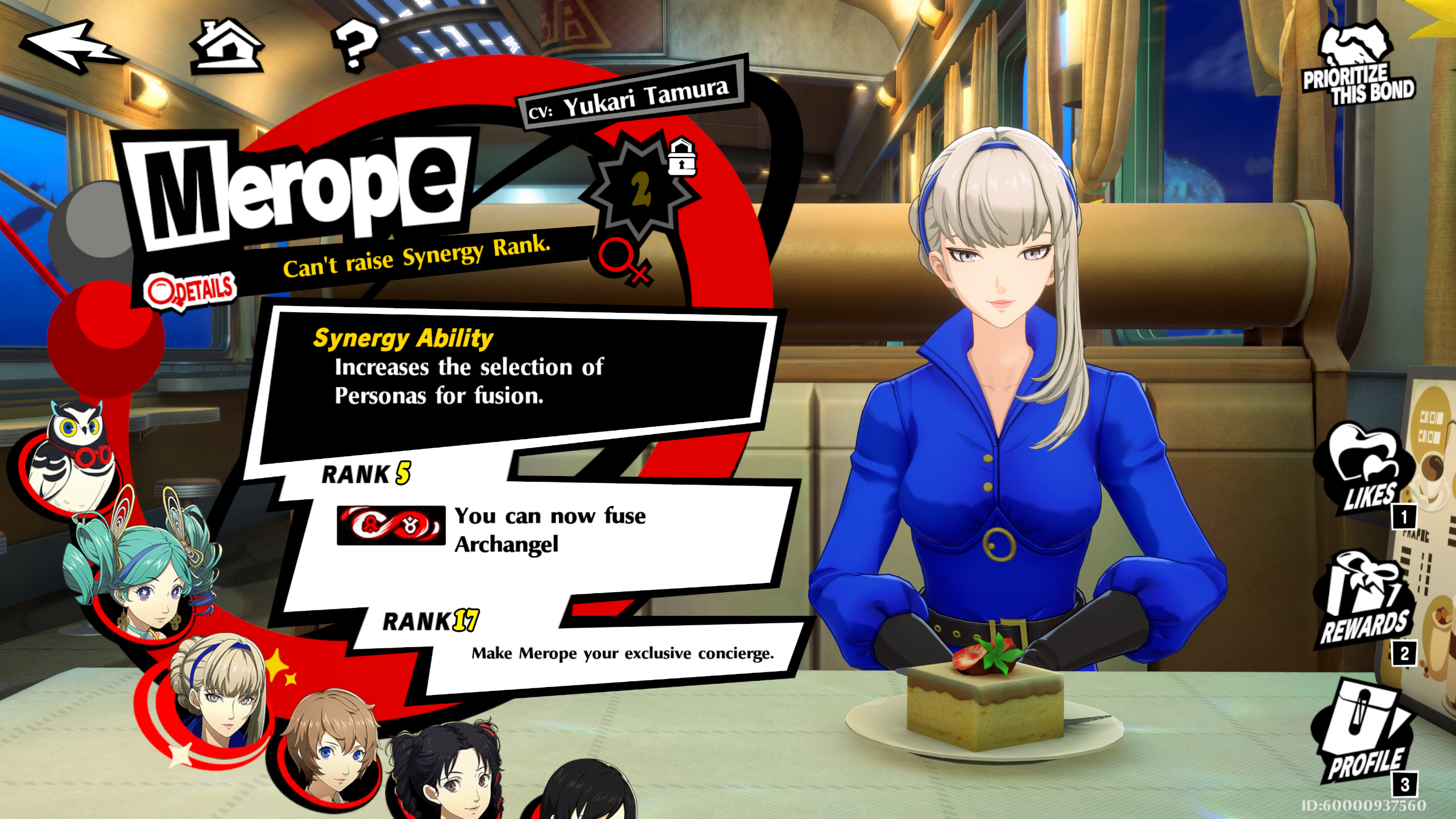 Merope’s Synergy Bond is also unlocked through story progression. Once you complete the “Traces of Dreams” mission, you can spend time with her to increase her bond rank. Increasing her bond allows for new Personas to be fused for Wonder.