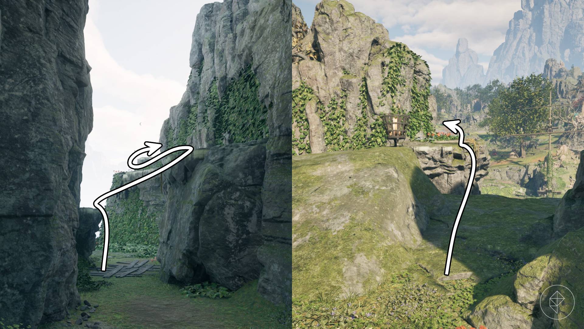 6. Climb to the top of the terrain and walk along the wall on your right until you reach the edge.