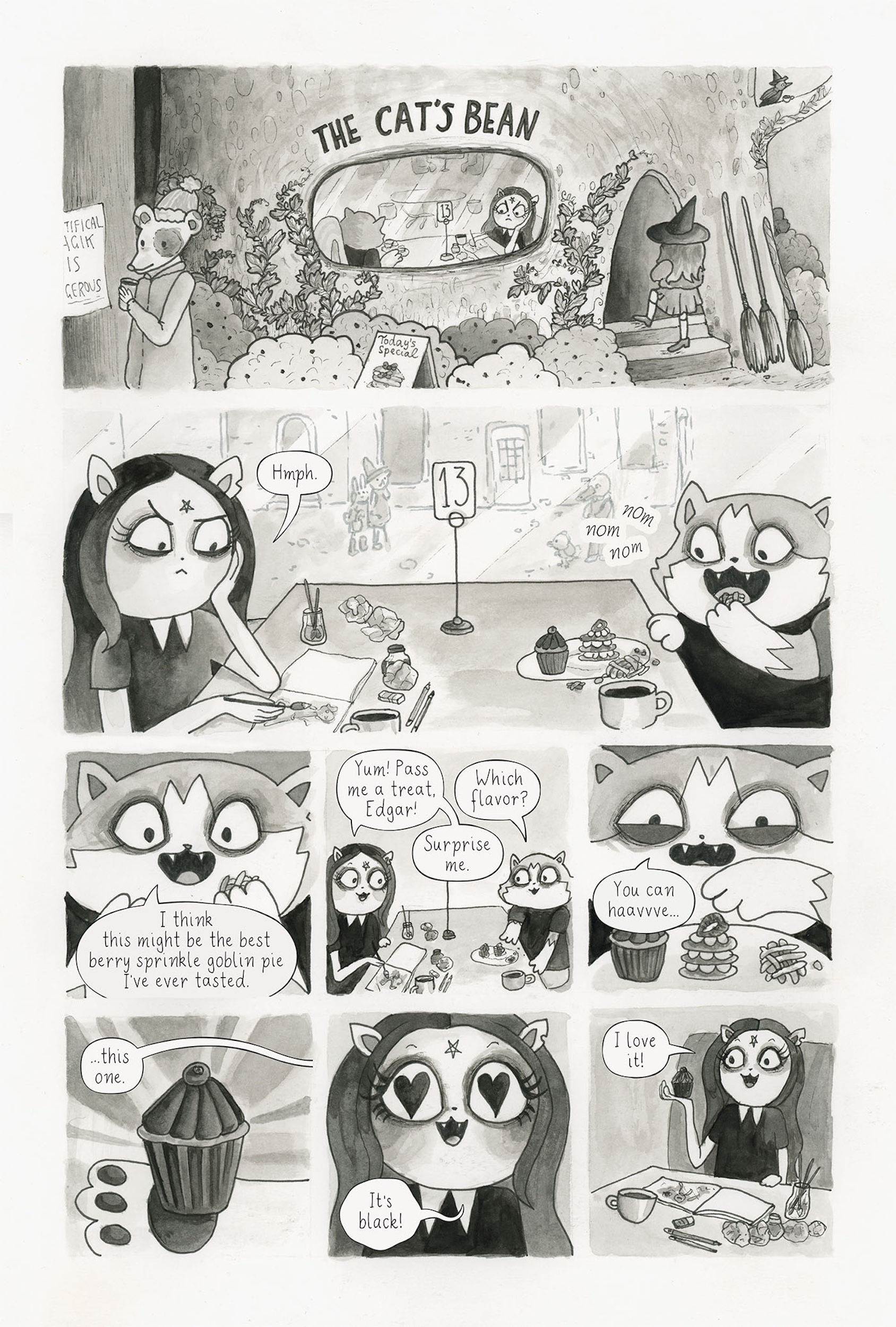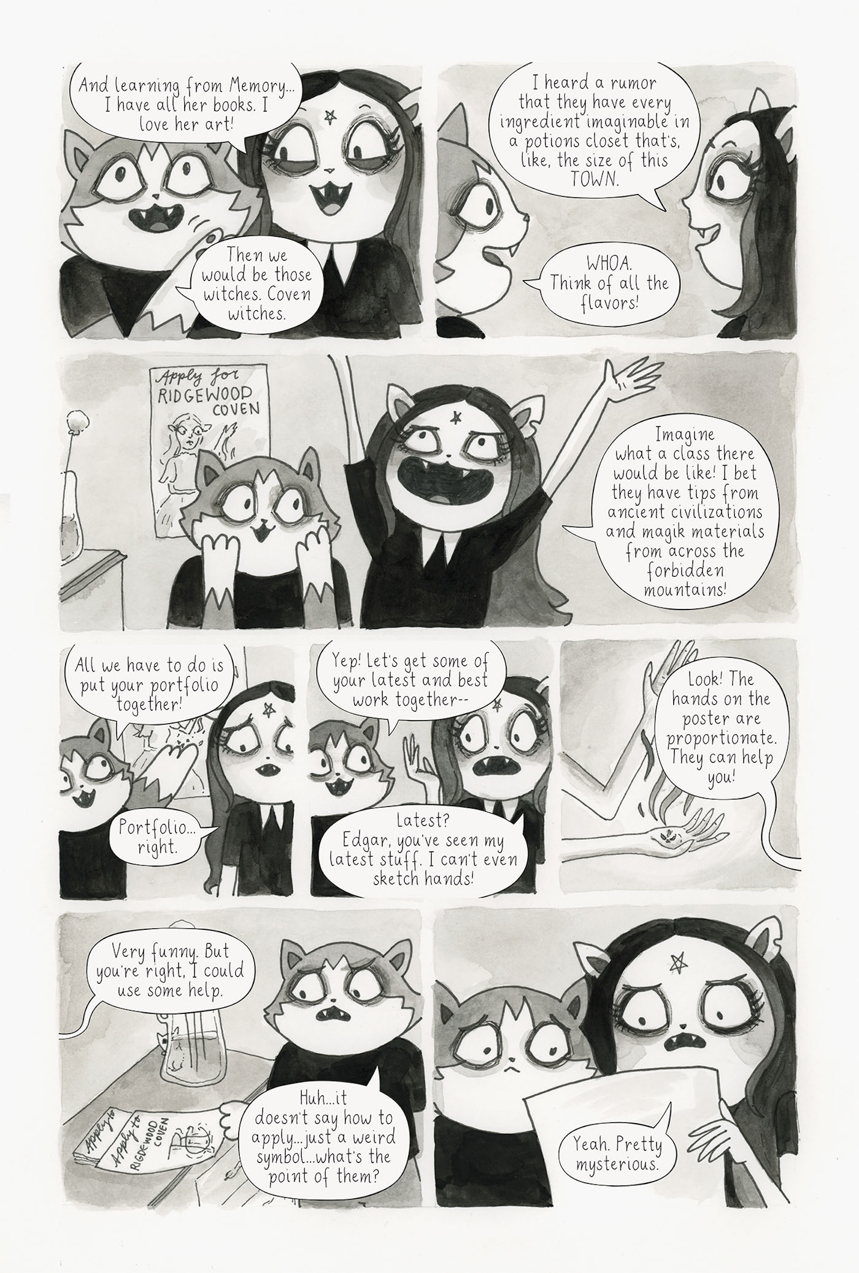 “For as long as I can remember my imagination has been home to the whimsical, witchy world of Ridgewood,” said creator Elyse Castro. “Where Claire and Edgar experiment with magik, eat tasty treats, and accidentally annoy their fluffy neighbor. It’s nearly been 8 years since I was able to bring some of this world to you all through The Summoning cartoon short, and I’m ‘over the broom’ to share one of Claire and Edgar’s most important adventures with you all in The Art of the Craft. Please enjoy, and remember—do no harm.”