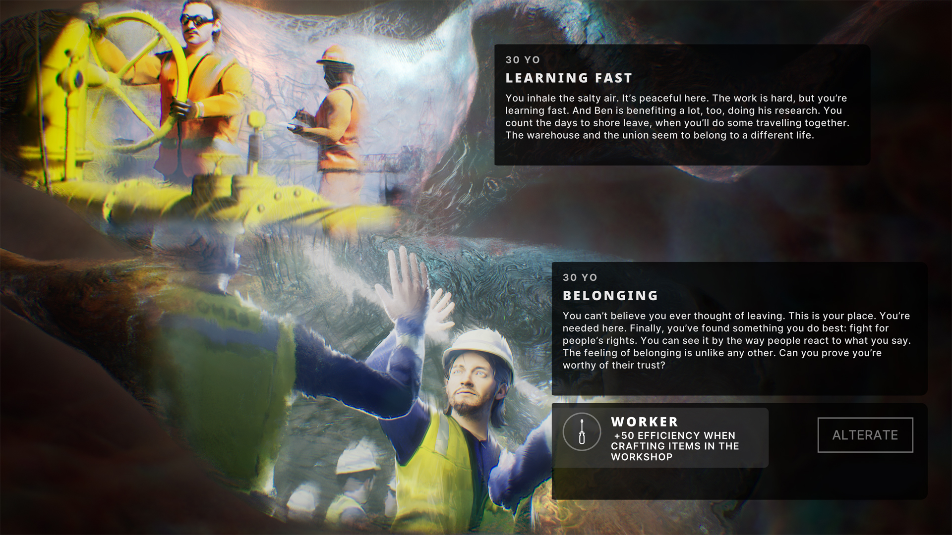As for the sixth and final Alter, choose one who fits your current situation. The Worker is usually the best choice as you’ll have more and more crafting to do in mid- to late-game, and he can speed up the process. That said, if your crew suffers from injuries, especially if you’ve decided to keep the Miner, the Doctor may be a better option. If you’re dealing with rebellious crew members, either the Guard or the Shrink may help you out, but you typically don’t need both.