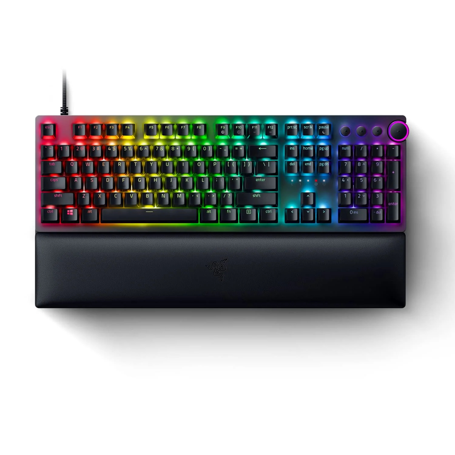 The Huntsman V2 gets all the Razer goodies into one desk-dominating package with Razer Chroma lighting, doubleshot PBT keycaps and Analog Optical mechanical switches. The magnetic wrist rest is removable, and it even features a handy dial in the top right corner that can be programmed in a multitude of ways. A big chunk of a fully-featured gaming keyboard, for a much-discounted price.