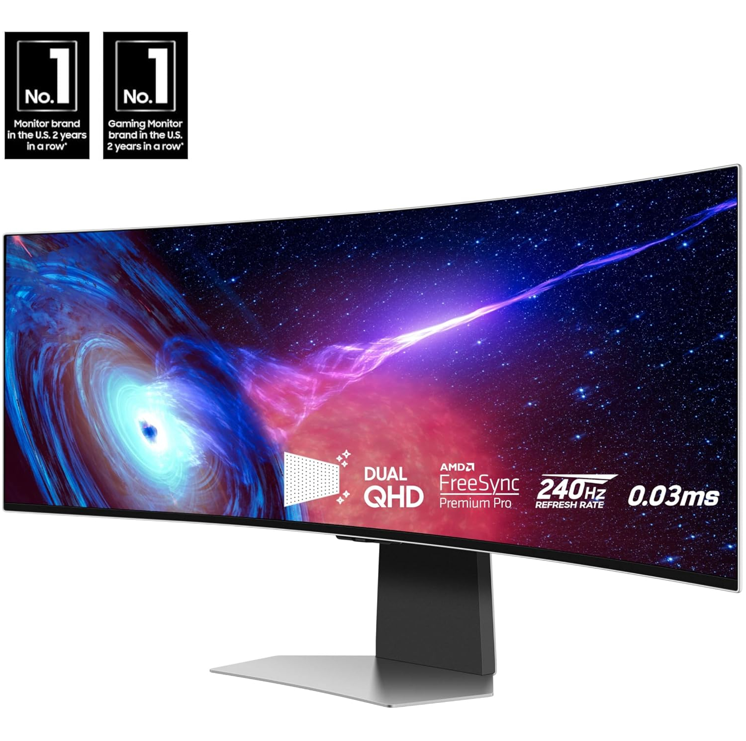 The best 32:9 gaming monitor is the Samsung Odyssey OLED G9 G93SC, and yes, that is a real aspect ratio. At roughly 3:1 comparing the horizontal and vertical dimensions, this is one wide OLED monitor. One might even venture to say it’s so wide as to be absolute overkill.