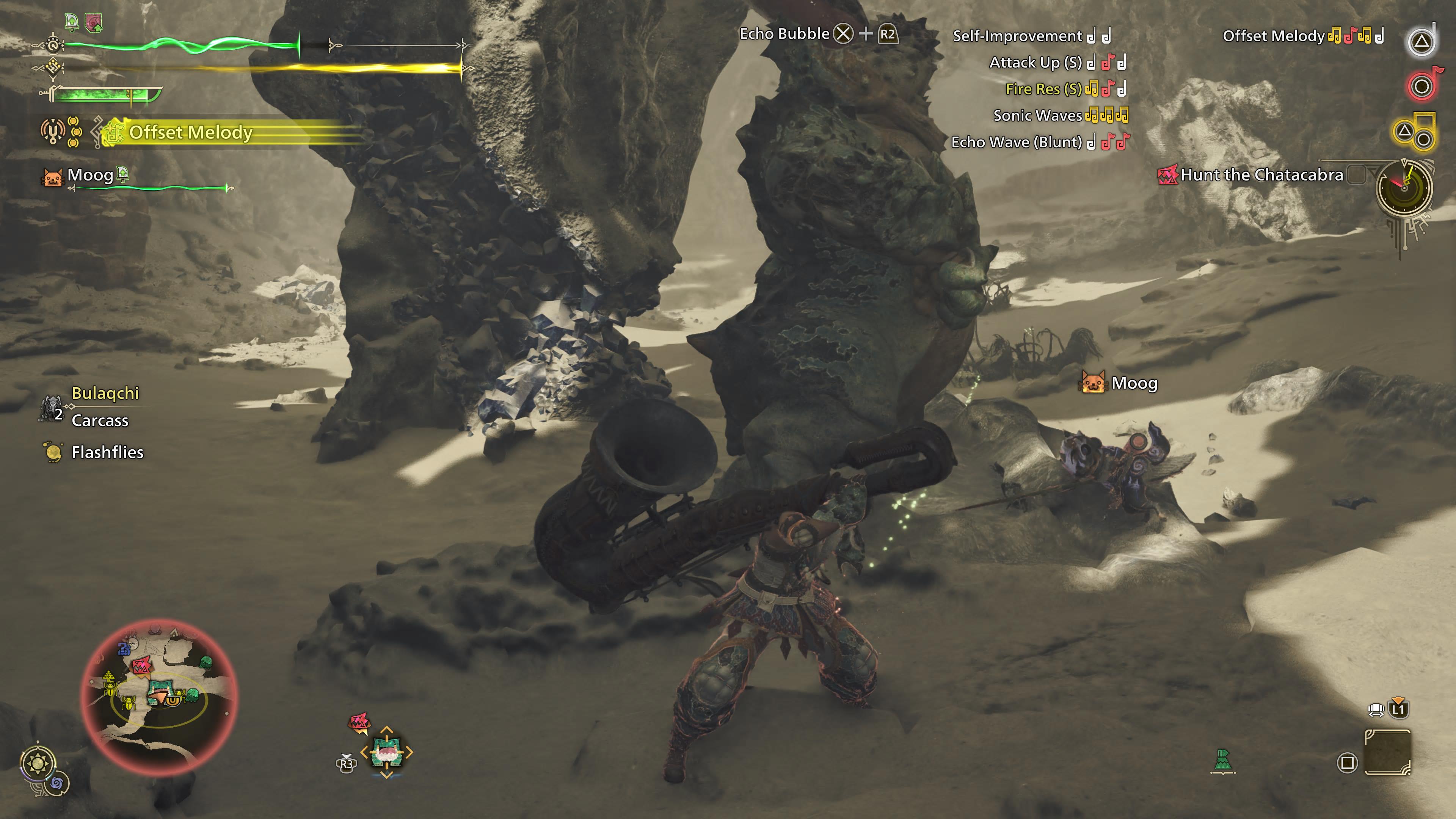 The Great Sword offers power but still allows for defense and countering with offset attacks. The Hunting Horn can use offset attacks too, though requires a more complex melody combo first — but it also has other melodies you can play, with each attack playing a note with set sequences that will offer buffs such as increased attack or increased elemental resistances, which you’ll then retain when swapping back to Great Sword (there are exceptions, such as self-improvement, which is exclusive to when using the hunting horn).