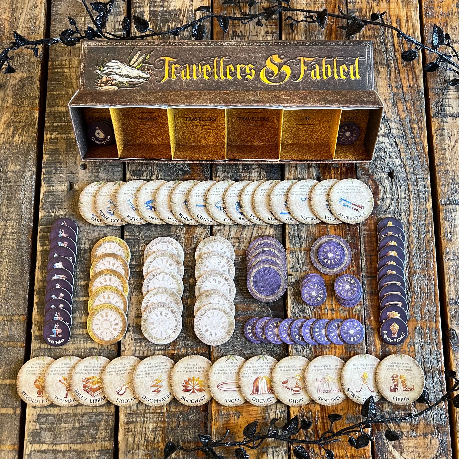 Of course, Clocktower’s characters aren’t just good for chaos. They’re also where the best parts of strategy come in. There are endless creative ways to use your abilities, and the character you’re given can have a big influence on who you choose to put your trust in. Figuring out how much to reveal about your character and to whom can also make or break your game. Many players choose to lie about their character and bluff being another, since outing yourself as someone with a powerful ability is a surefire way to find yourself at the top of the evil team’s hit list. In my first game, I drew the Fortune Teller and early on chose to reveal my role to strengthen my case against another player. (I knew the risk, but I couldn’t help myself. I got caught up in the drama!) Unsurprisingly, I was murdered that evening, with the added sting that I was wrong about the person I accused of being a demon.