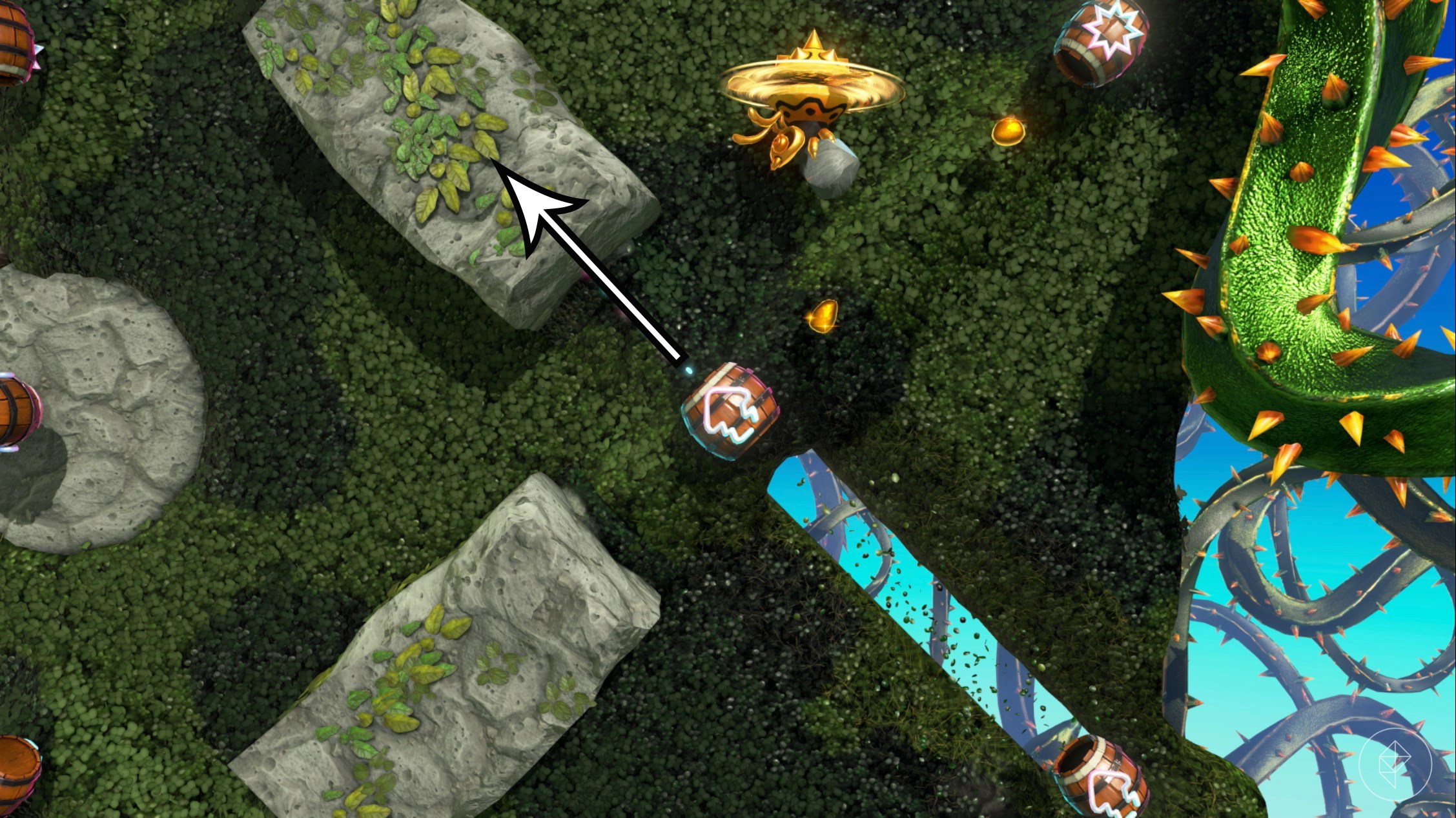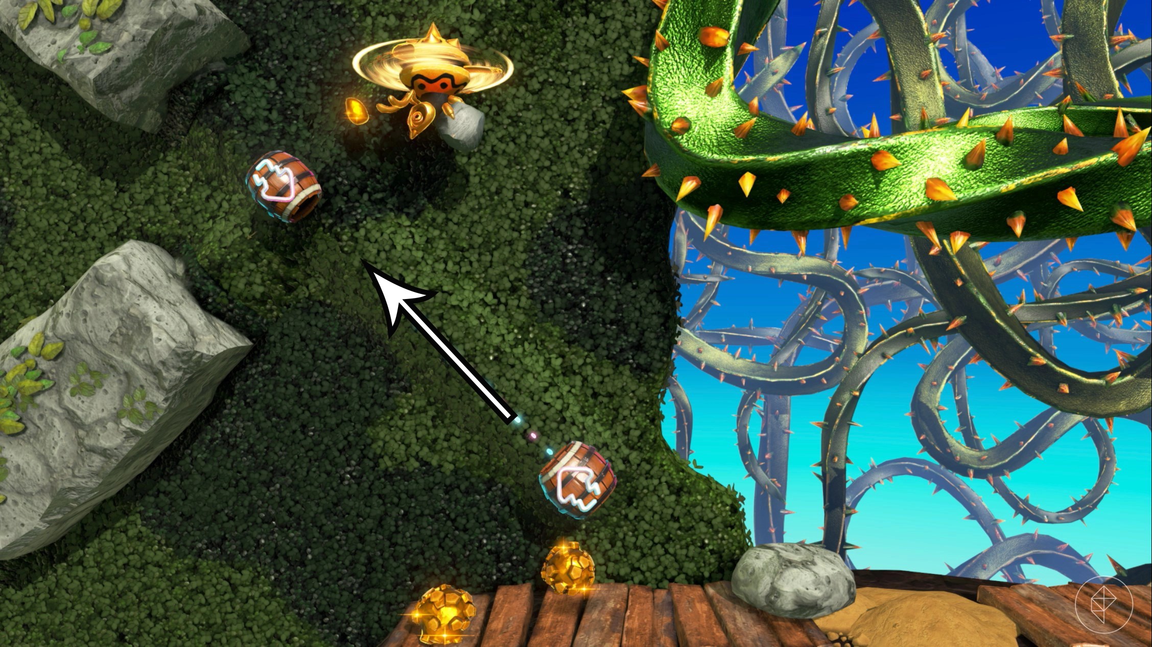 The rest of the course is comparatively straightforward. The cannon in the secret room drops you at the end of that particular obstacle course. Angle yourself to the upper left, fire when it’s safe, and smash down through the stone pillar to carry on. The route to the end of Bramble Country is linear after this, minus a few little detours for extra gold if you want it, so just follow the path to the end, where you’ll find the final Banandium Gem.