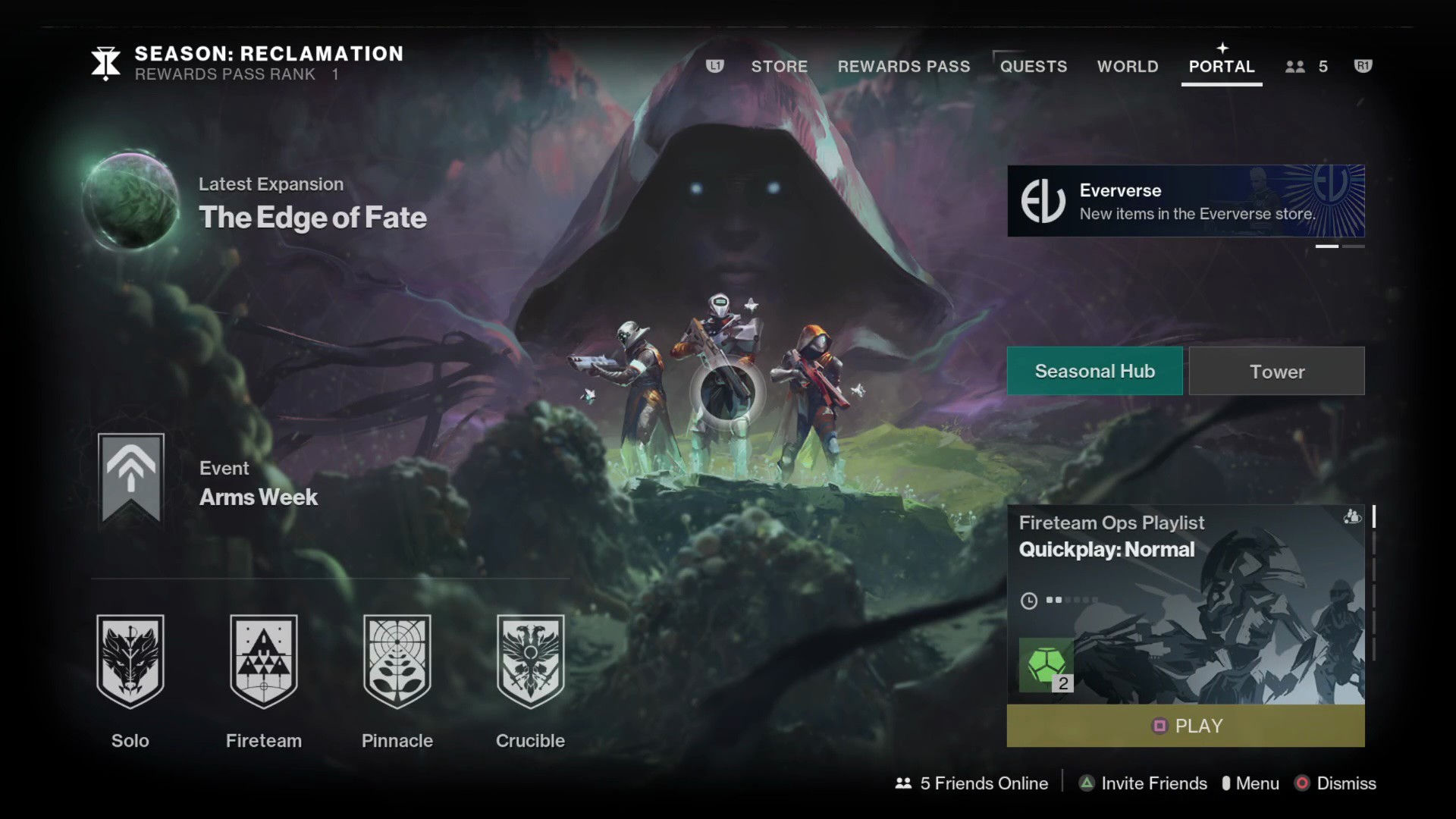 Portal menu: This new menu offers all players a new option to dive quickly into Destiny 2’s most popular content. Bungie’s goal is to spotlight modes with guaranteed paths to growing Guardians’ power and arsenal. This quick-play shortcut highlights modes like SoloOps, Fireteam, Pinnacles, and Crucible. The World map still provides the traditional interactive galaxy map Guardians are used to.