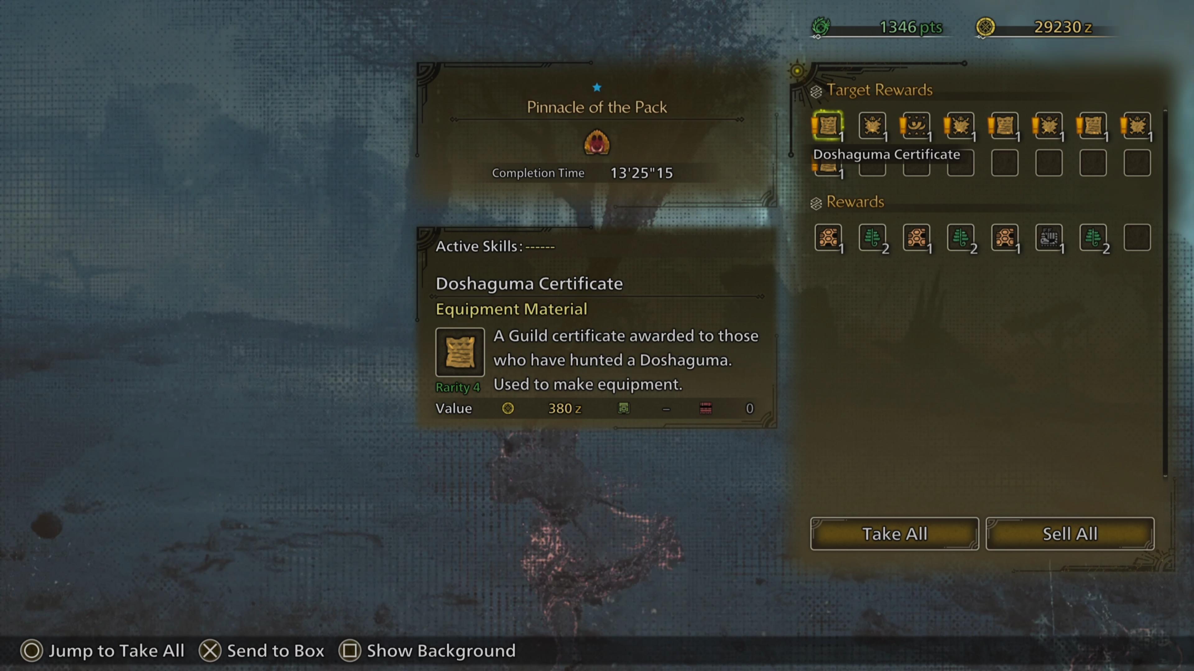 | Doshaguma Certificate | Target rewards (x1/11%) | 1 star | N/A |
