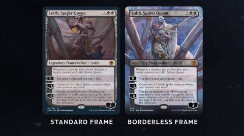 Seeing some of the best of the best from the Forgotten Realms in Magic: The Gathering card form is pretty exciting as it is, but we also get a look at some of the new card treatments. The “Rulebook showcase” frame highlights the Dungeons & Dragons tomes of yore and gives them some cool alternate art, but personally I think Lolth’s borderless frame is the best look yet. I’m definitely still interested in seeing how some of the monsters look in the slick new frames, especially the sure-to-be-powerful Baleful Beholder. Does it zap cards with its dooming gaze? We’ll have to wait and see…