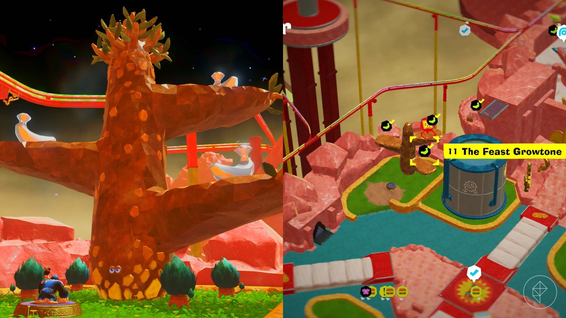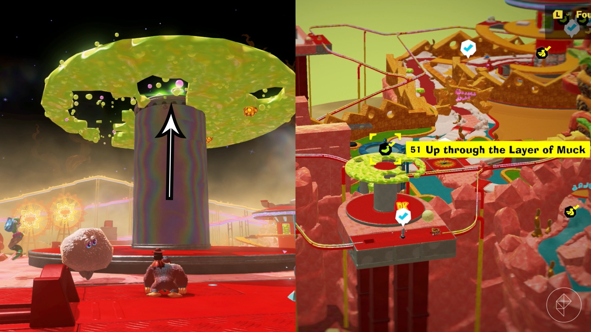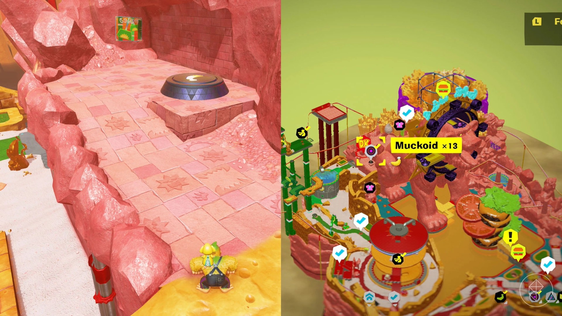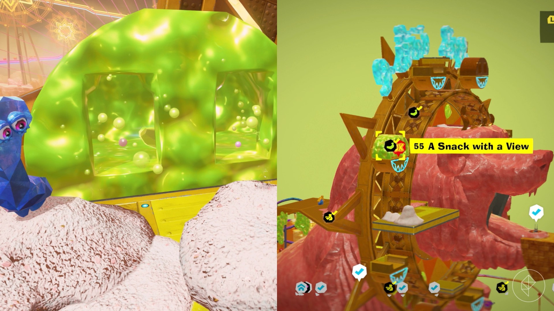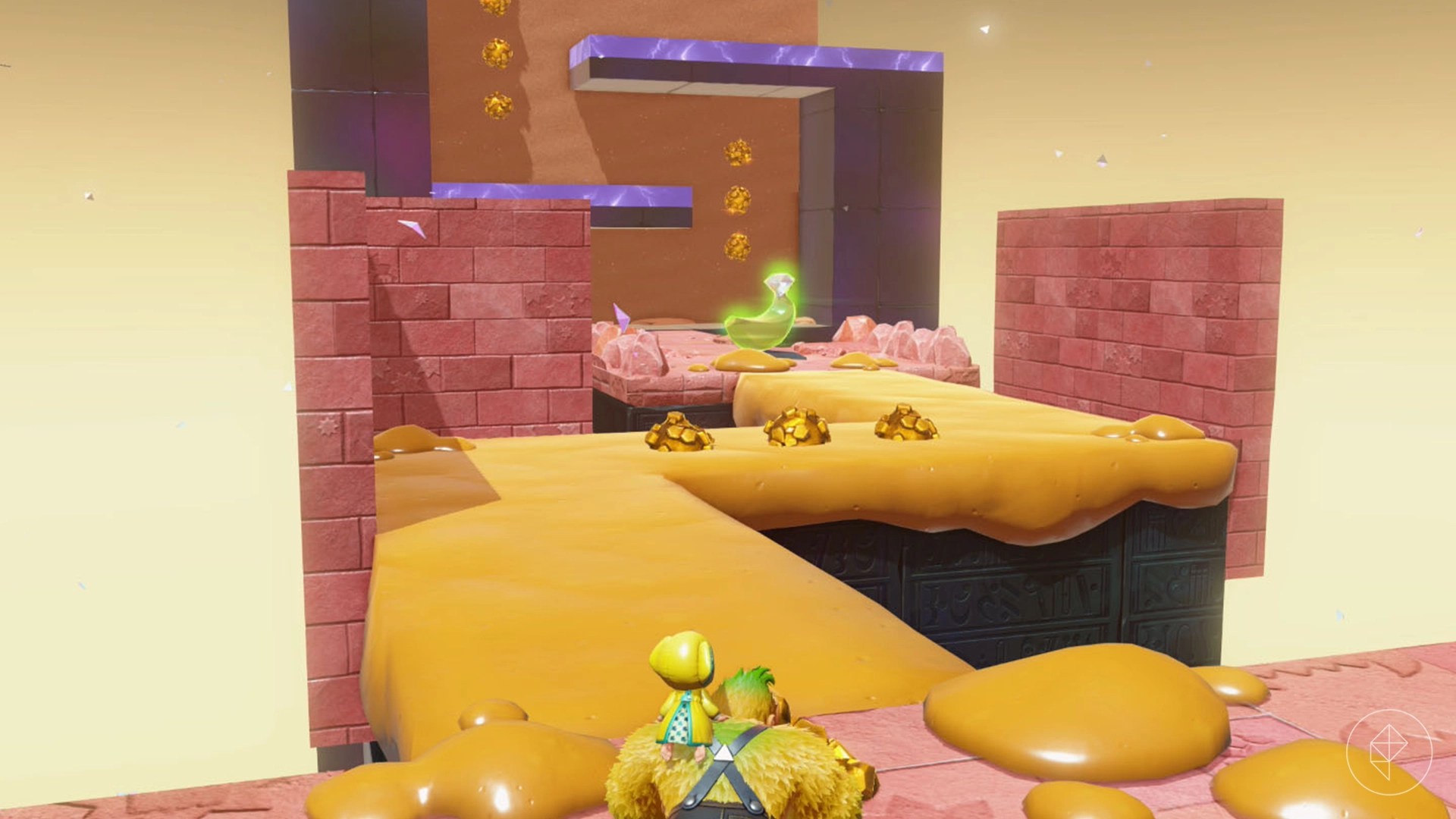 In Donkey Kong Bananza, the 14th layer you’ll go to is the food-filled Feast Layer, an amusement park themed around delicious and greasy food. This place is run by lion-shaped Fractones and has rivers of hot oil, salty sands, and… green nasty muck hanging from the walls? Oh, and a ton of Banandium Gems.