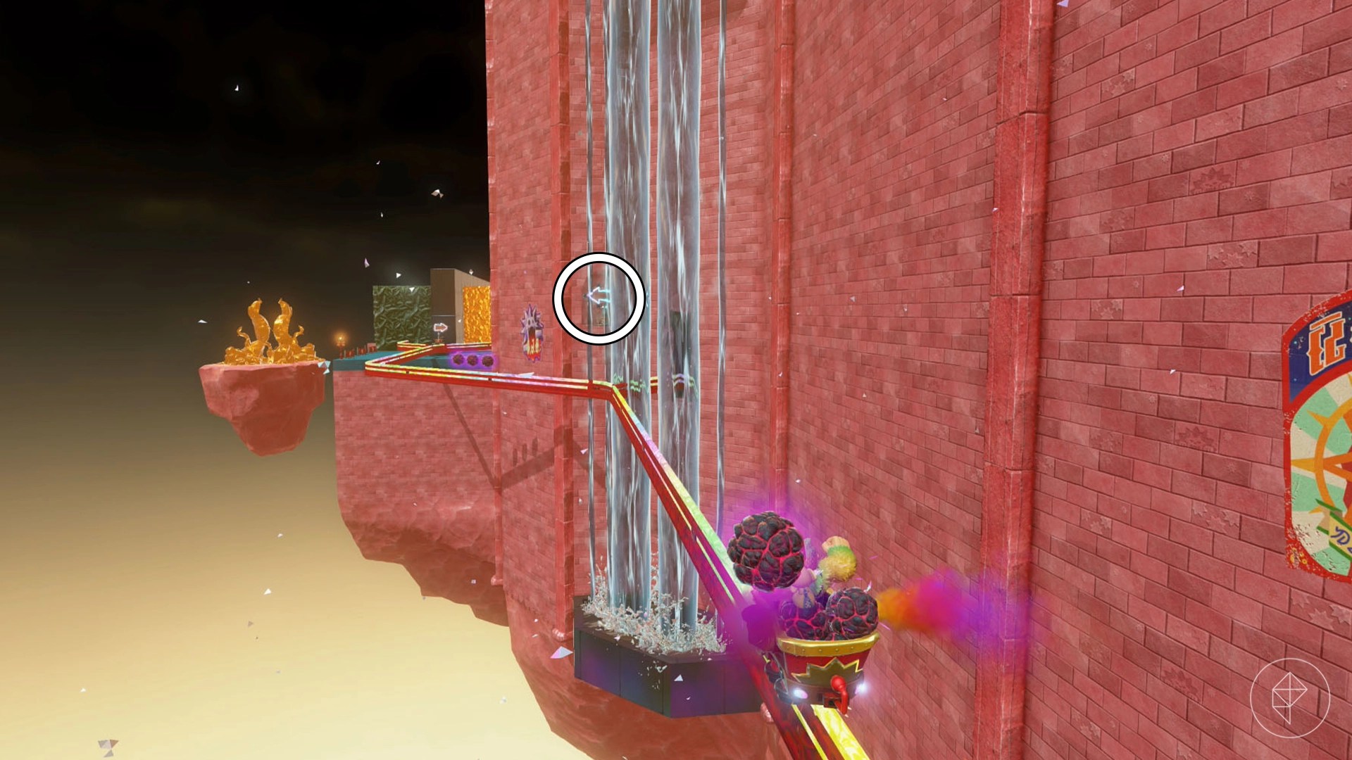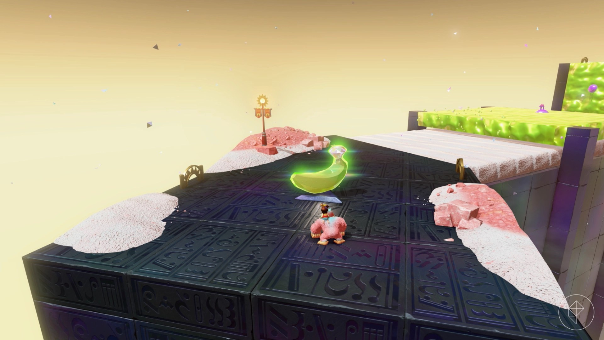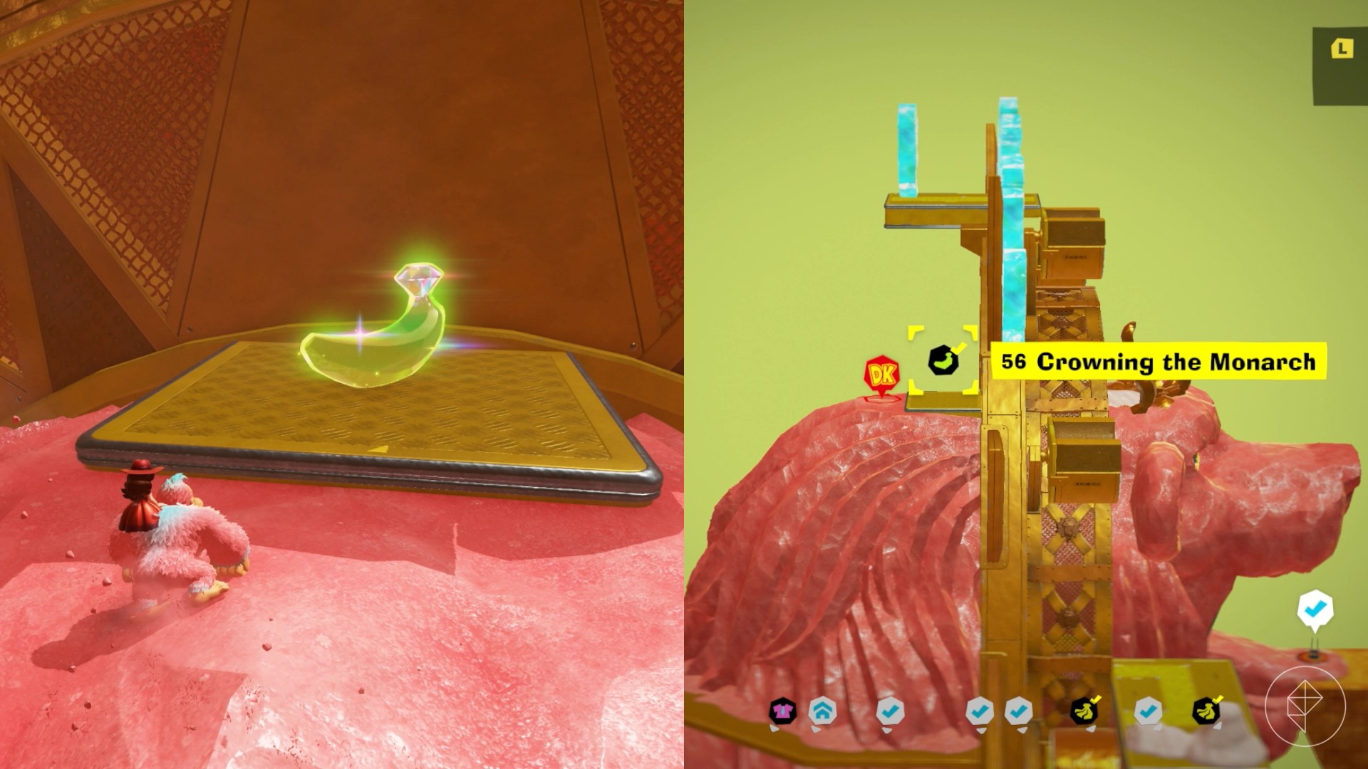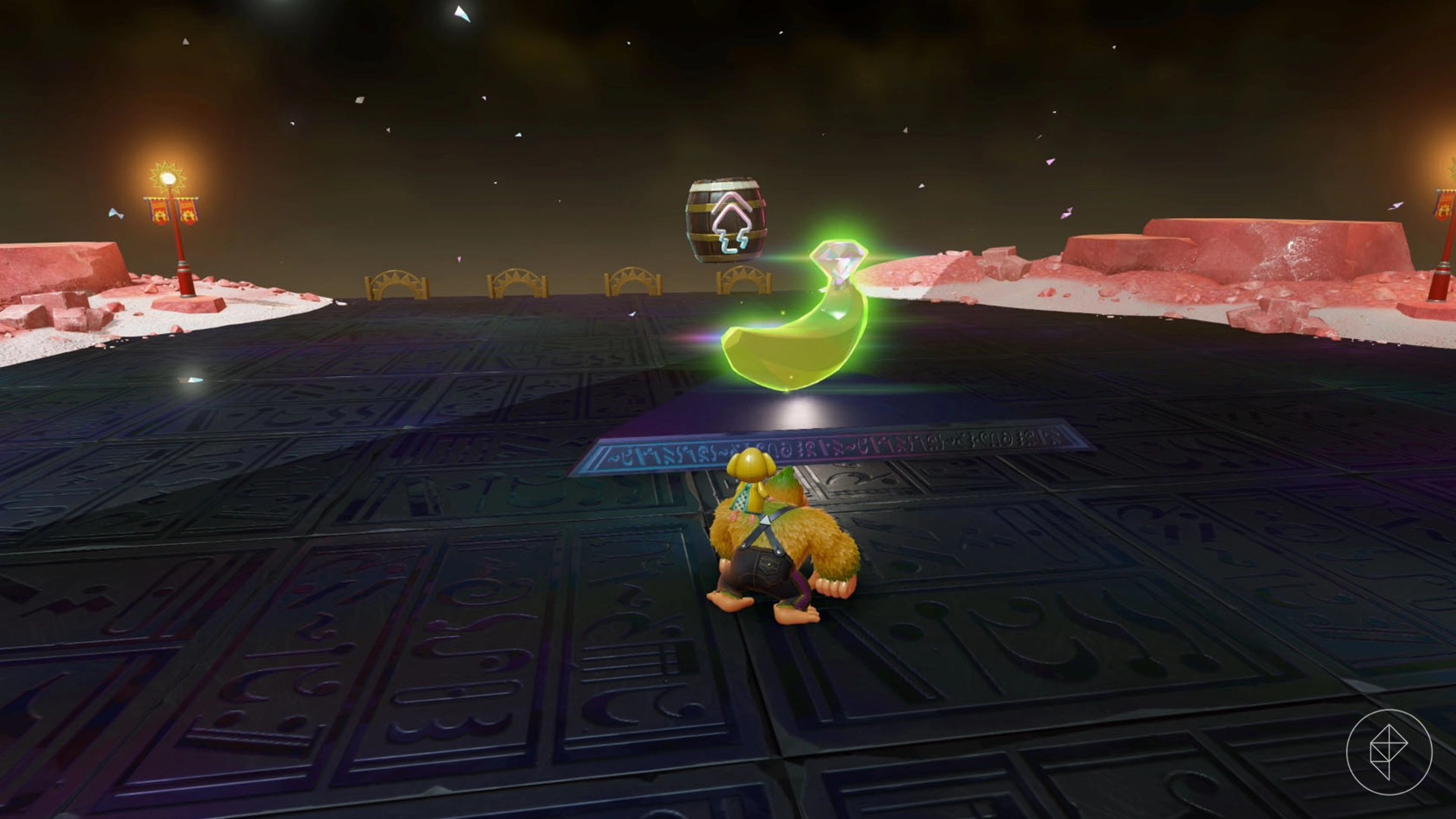 Starting at the Fried Pride Plaza tuning fork, go left in the direction of the battle challenge course you’d completed to obtain the #9 banana in this layer. This time, climb the wall and, on the other side, you will see a platform with some salt. Remove the salt to find this banana.