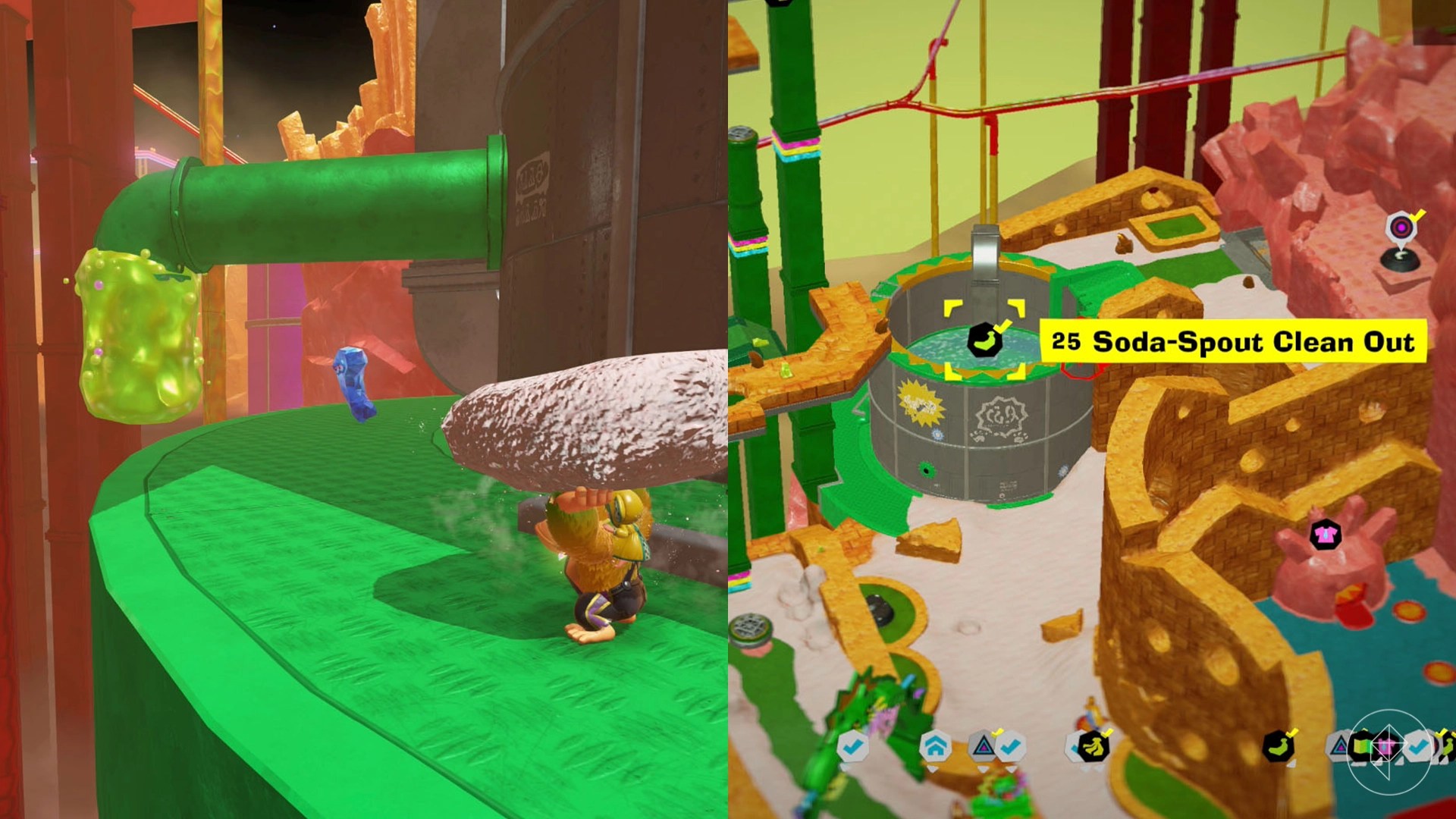 Approach where the path splits off slightly between the oil cruise and Fried Pride Plaza to find a wallopoid that opens a gate to a voided banana. Follow the void trail and then break the void device. You’ll need to backtrack to the banana while being careful of wallopoids that will now try to crush you.