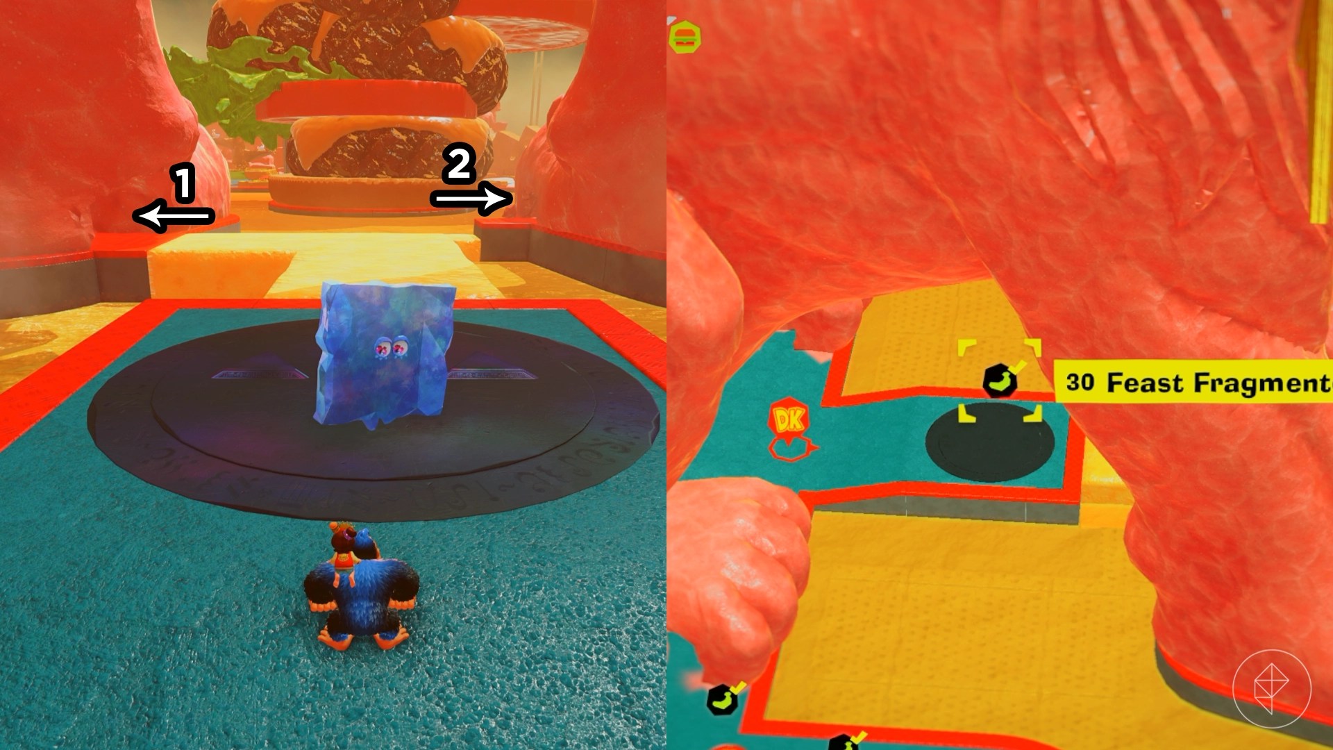 To collect this banana, you need to enter the Feast Layer Challenge Course 3. To unlock this challenge, talk to the Constructone to the right of the Ferocious Fryhouse tuning fork while facing the purple gate. It will charge 600 to open the challenge.