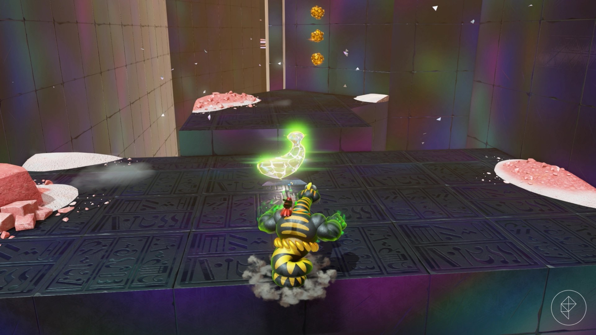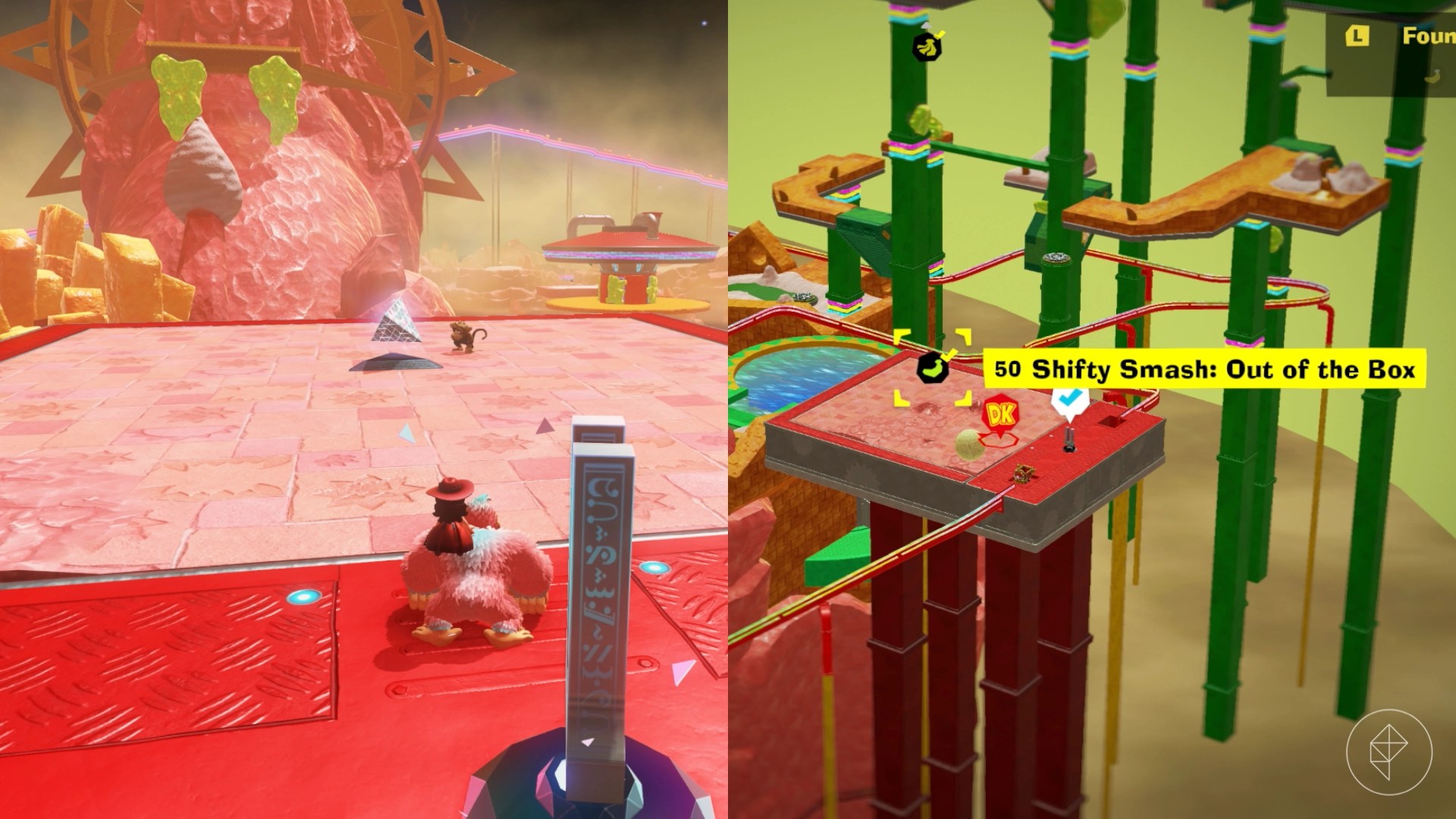 Activate this shifty triangle and then use Snake Bananza to charge jump on to the second floor of the platform. Break the shifty blocks to get this banana.