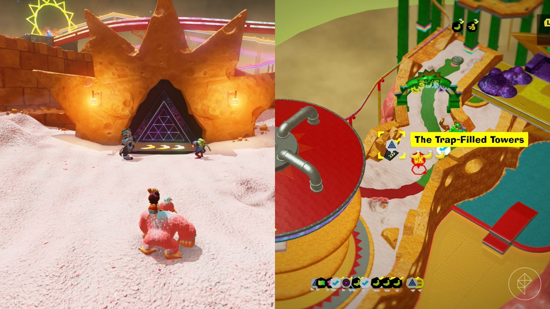 In Donkey Kong Bananza, the 14th layer you’ll go to is the food-filled Feast Layer, an amusement park themed around delicious and greasy food. This place is run by lion-shaped Fractones and has rivers of hot oil, salty sands, and… green nasty muck hanging from the walls? Oh, and a ton of Banandium Gems.