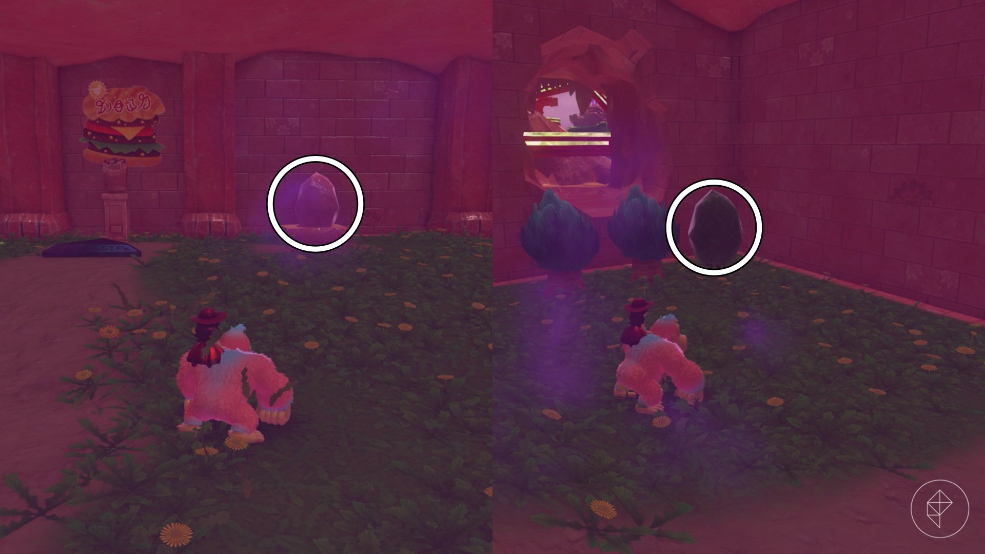 Two of the Fractones aren’t hidden super well, retaining their shapes on the edges of the room. One of the Fractones is “hidden” on a window. Dig under the grave to the right of the Fractone (if you’re facing the pedestal that will hold the Bananadium Gem) to find a salt Fractone that doesn’t count towards the four. Dig down in front of the mucked-up grave and then use a chunk of the salt Fractone to reveal the muck Fractone.