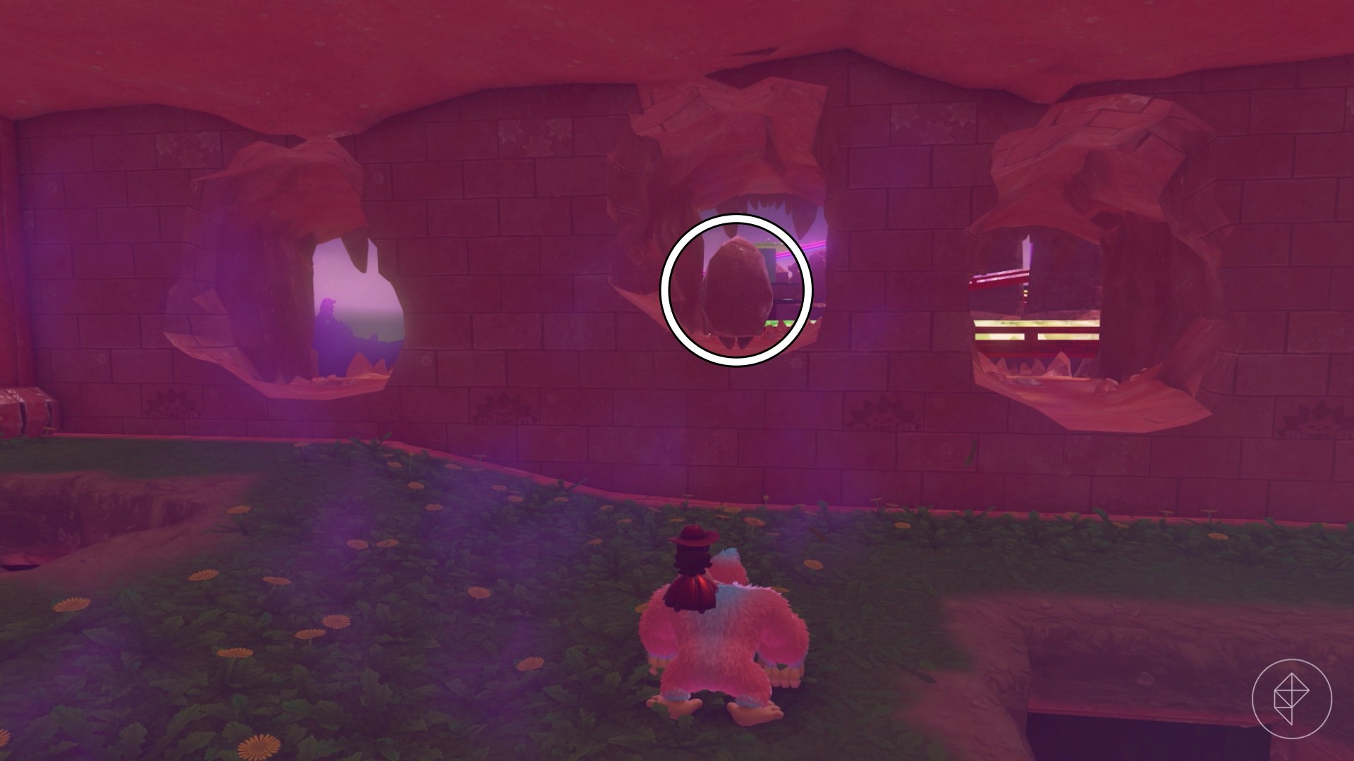 Approach where the path splits off slightly between the oil cruise and Fried Pride Plaza to find a wallopoid that opens a gate to a voided banana. Follow the void trail and then break the void device. You’ll need to backtrack to the banana while being careful of wallopoids that will now try to crush you.