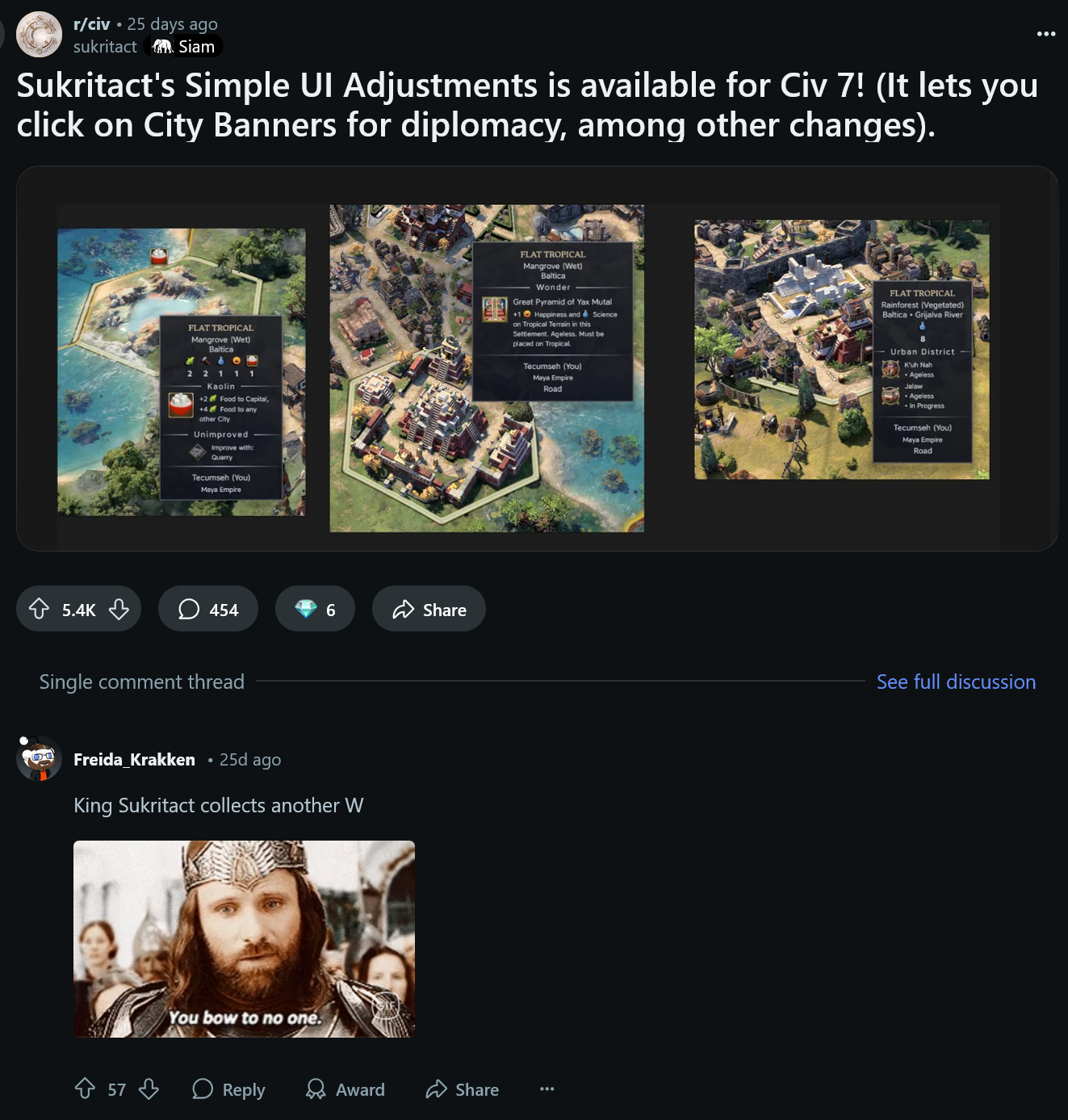 Okay, a little bit of pressure there, but there’s genuine happiness and excitement for the move, not just because “modder gets hired by game studio” is a natural feel-good story but because Tan’s previous work is just that good: The reactions to a recent update to the Simple UI Adjustments mod for Civilization 6 that got it running in Civ 7 were not too far short of rapturous: