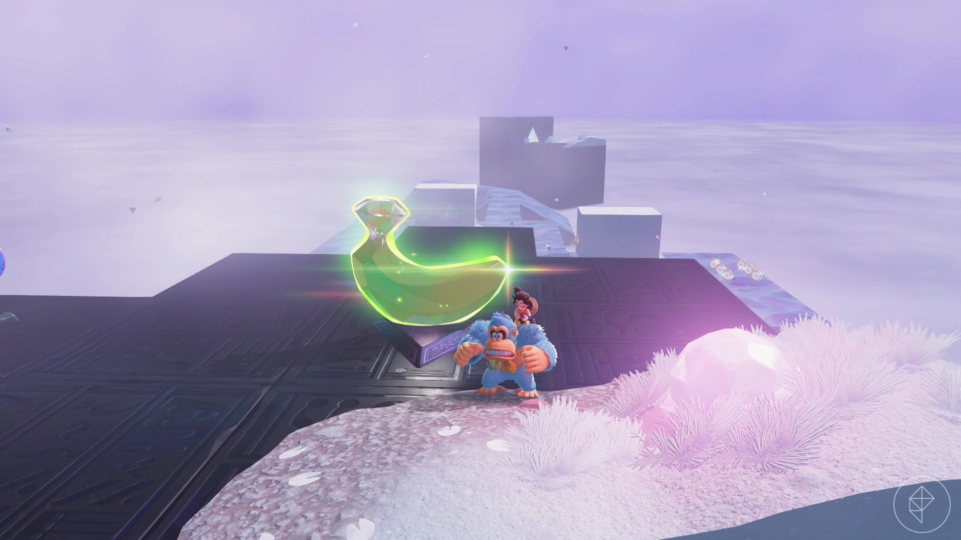 You earn this banana after completing the Freezer Layer Battle Challenge 1. The entrance is located inside an ice cream igloo next to the Crumbly Bridge. (Transforming into Kong Bananza form and using rolls and power punches makes this fight go by faster.)