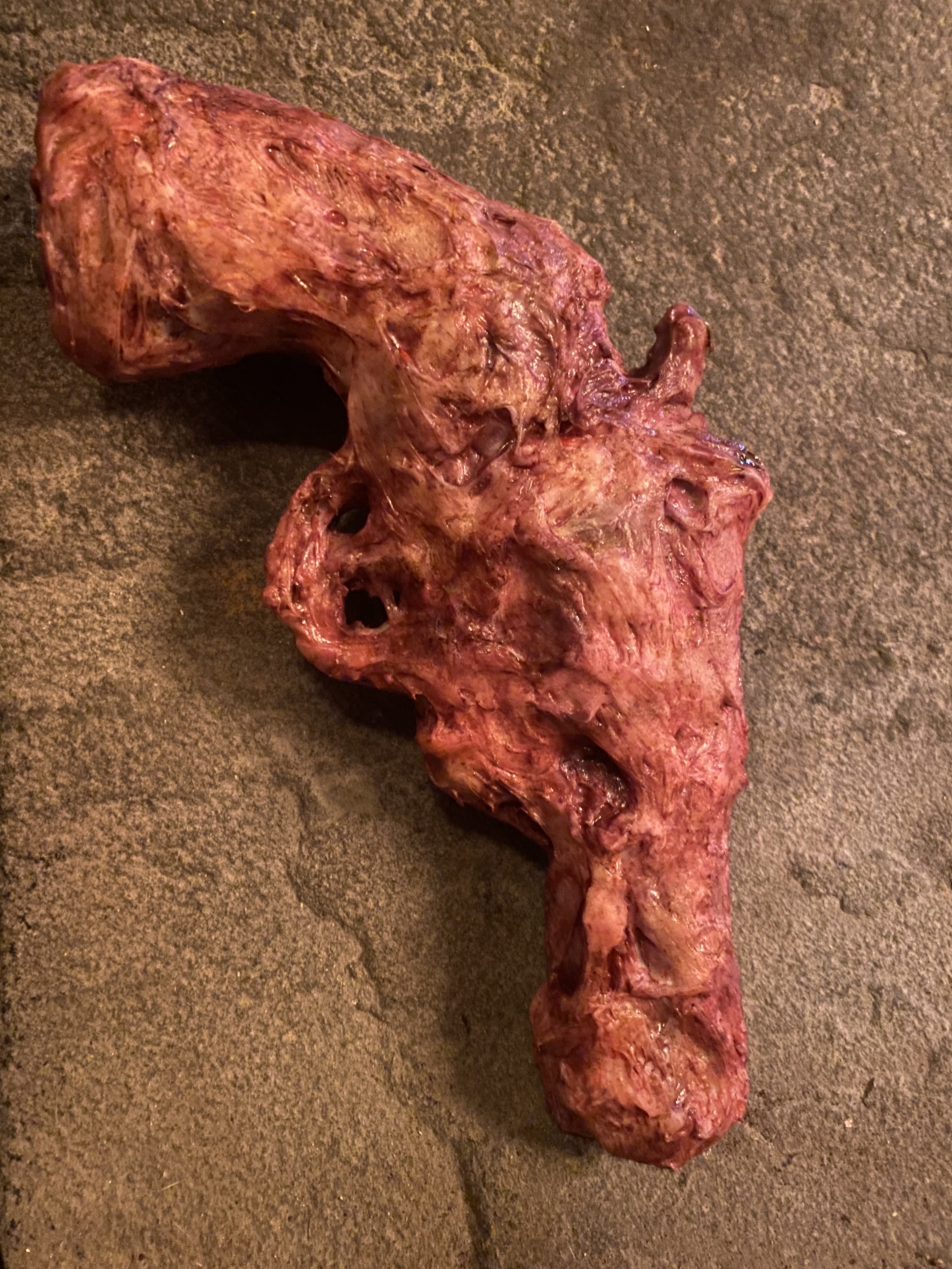 We also pushed the film stock as well to create this kind of ’80s grindhouse look, which is fun. But I think once we discovered in the writing process that we could go experimental in these nightmare sequences, it just got me very excited about the ’80s schlocky films that I grew up watching. Robert Bottin’s special effects on The Thing were a big influence. We were trying to do more of that, but obviously budgetarily, we couldn’t afford it. It’s expensive to do practical effects even if you’re doing them at such a small scale as us. The flesh gun was supposed to be the only Videodrome reference. The hand through the chest was trying to rip off The Juniper Tree with Björk!