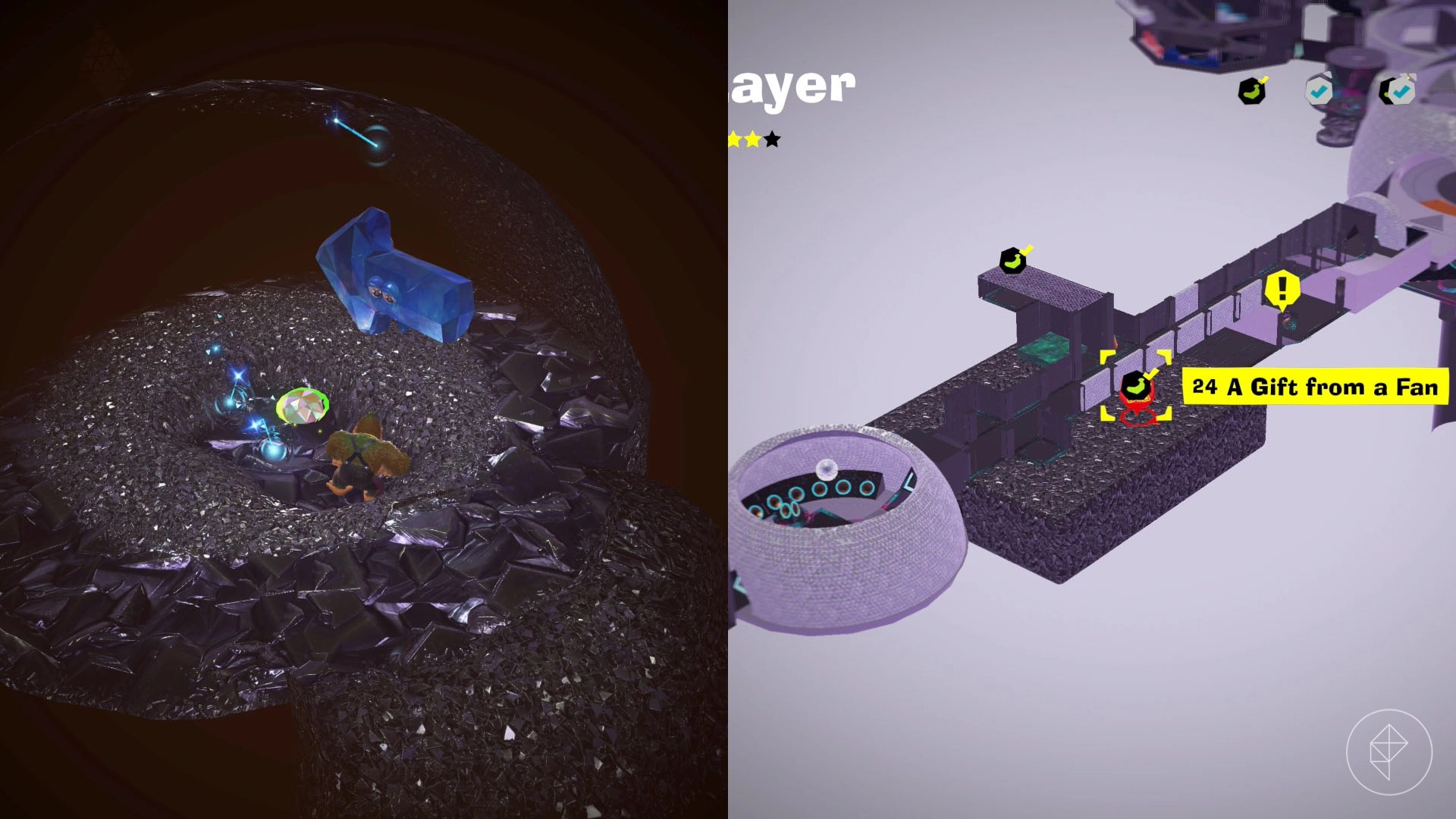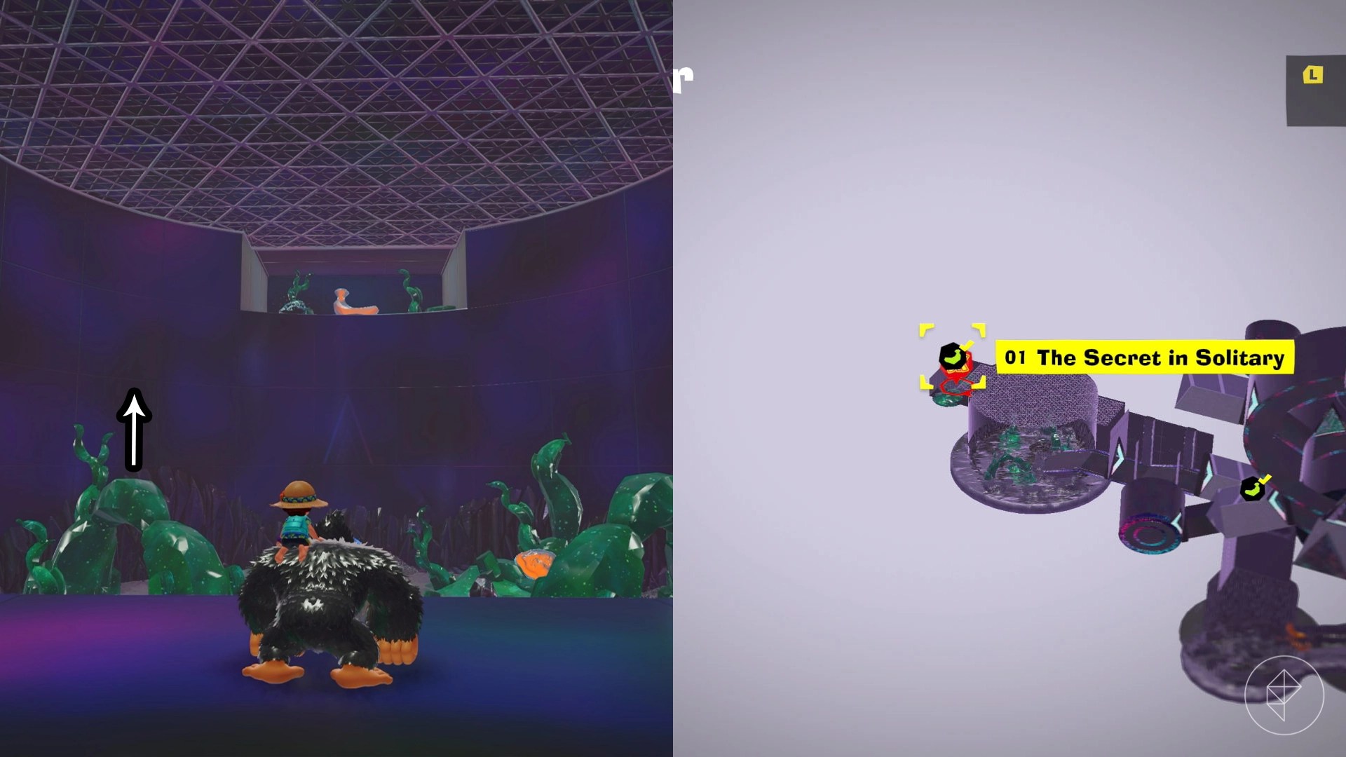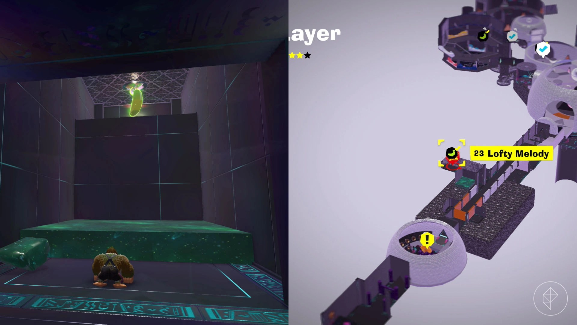 In the VIP room, speak to the Fractone to hear about his brother that is stuck in jail. Return to the jail, and head up to the top floor to find a Fractone locked in a cell. Free them by swapping the cell door to gold and breaking the door. Return to the older brother in the VIP room, and they’ll unlock the terrace. Jump into the cannon and fire yourself at the disco ball to find a banana hidden inside.