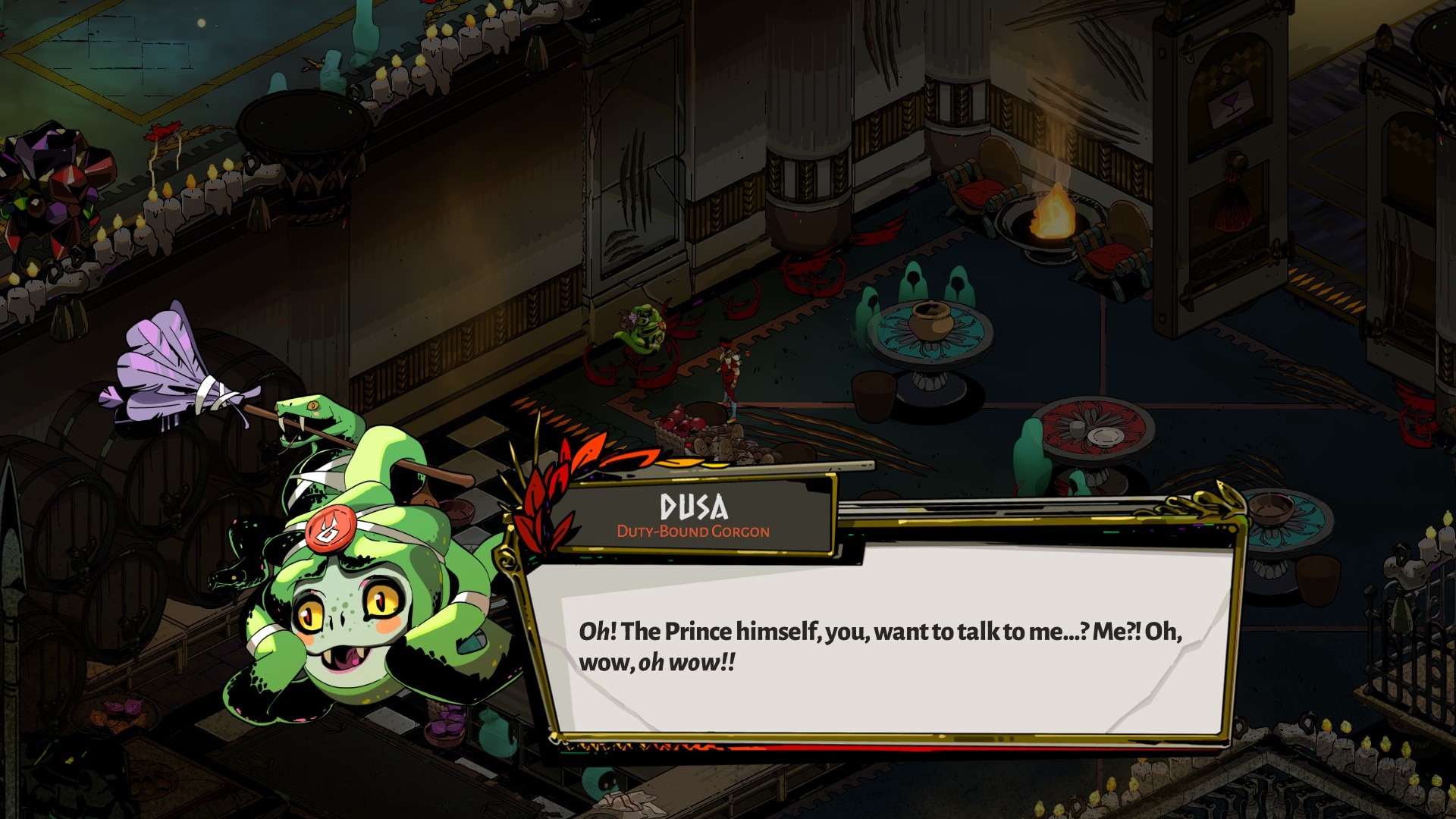 Hades writes around its randomness, which is inherent to roguelikes. Take Zagreus’ relationship with Megaera, a boss fight that’s somewhat random — sometimes you’re instead fighting one (or more) of her fellow Furies. Through Meg’s appearances and her absences, we learn more about her character, her grudge against Zagreus, and her relationship with her sisters. Characters come and go in the game’s hub world, the House of Hades, where Zagreus is reborn upon death. When characters like Achilles, Thanatos, and daddy Hades himself are present, we can move their story forward. When they’re absent, we miss their presence and wonder what they’re up to. We learn to appreciate their reappearance, relishing in the opportunity to speak with them.