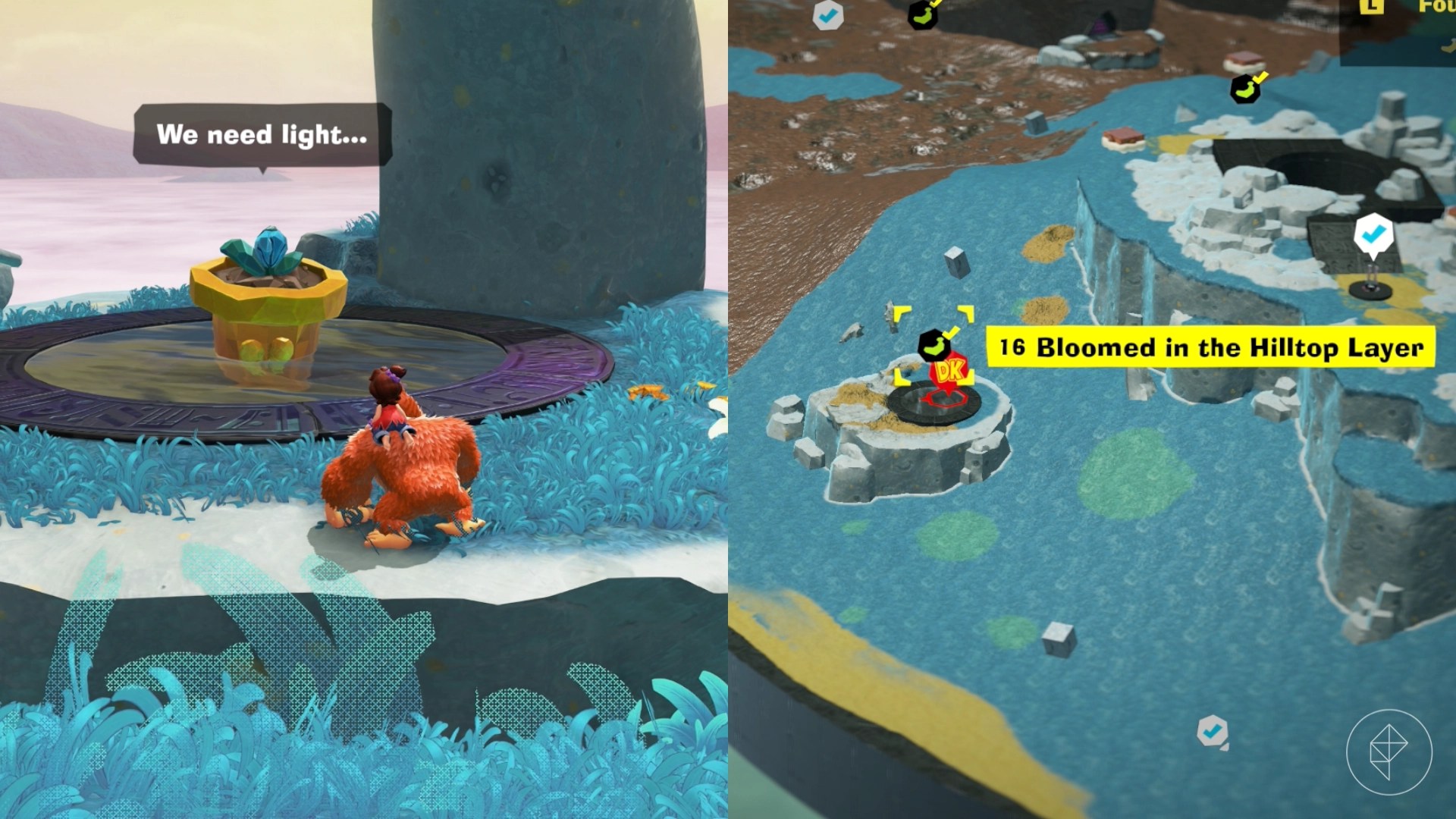 The Hilltop Layer is the second full layer you’ll visit in Donkey Kong Bananza. This area is much smaller than the previous Lagoon Layer, but that doesn’t mean there aren’t tons of Banandium Gems to collect.