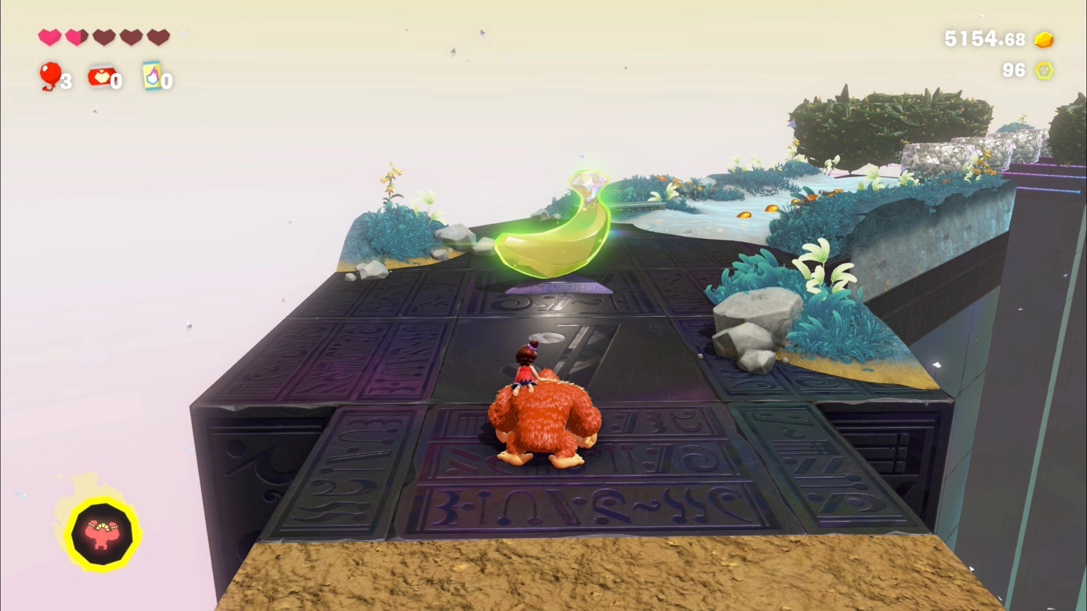 The Hilltop Layer is filled with nice crystal-like creatures who are experts in the art of turf surfing. They’ll encourage you to skate around the flat-ish, but also hilly area, grabbing gold and Banandium Gems as you go.