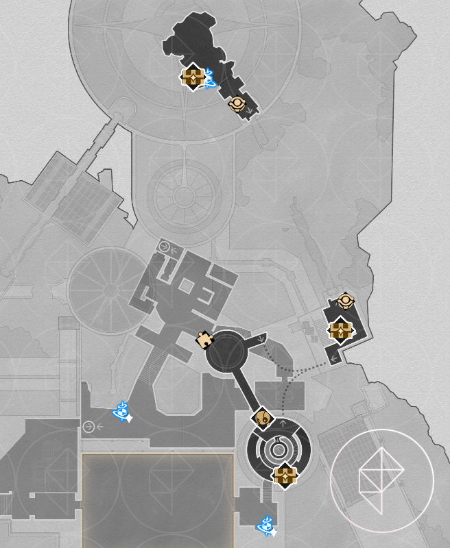 The 3D map room in the north (the round one) has a secret elevator that opens up and gives you four chests (one in the center of the room and three below it). To access it, you need to do the side quest “I Once Was in Arcadia.”