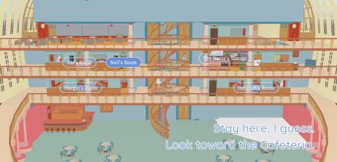 Wayward Strand’s other writer, Jason Bakker, feels like telling many storylines at the same time means we can really round out our characters. “It allows each character to have quiet moments, time to themselves. Each character can be the centre of attention for a bit, then the player can follow them as they return to their rooms, and be with them as they process what just happened.”