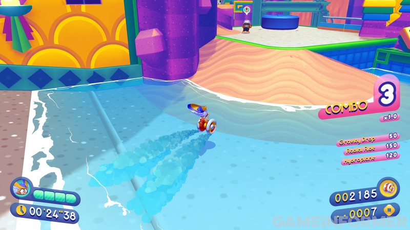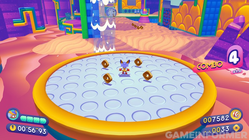 Although it takes me some time – something I welcome because it’s rare to experience a new moveset that challenges my preconceptions of a genre – I finish my Penny’s Big Breakaway play time with the realization that it’s not a 3D platformer in the vein of something Nintendo might create, another challenged preconception. On the one hand, it’s a Tony Hawk’s Pro Skater-inspired platformer with an emphasis on momentum that will appeal heavily to speedrunners and time trial fans, with a constant score and Devil May Cry-style combo tracker on the right side of the screen, too. On the other, it’s a team’s love letter to the weird and sometimes broken platformers of the 3D genre’s early days. Together as a complete package, it rules.
