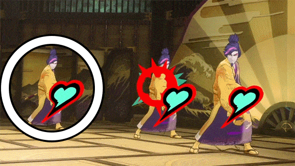 Alternatively, you can either hit each one or wait until the real Miyazawa goes in for an attack. Just after the real Miyzawa attacks, he’ll drop his sword onto the ground and retreat to his position. Now you’re free to attack the real Miyazawa for a turn before the three swap places. However, if you successfully damaged the real Miyazawa, you can look for whichever one has a lower health pool and focus on that one.