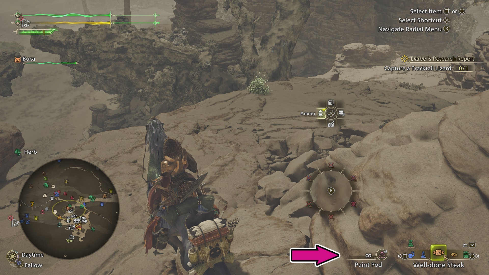 If you have trouble navigating to any point of the map, press down the right control stick to mark it with a “Waypoint” and your Seikret will automatically run to it after you close the map.