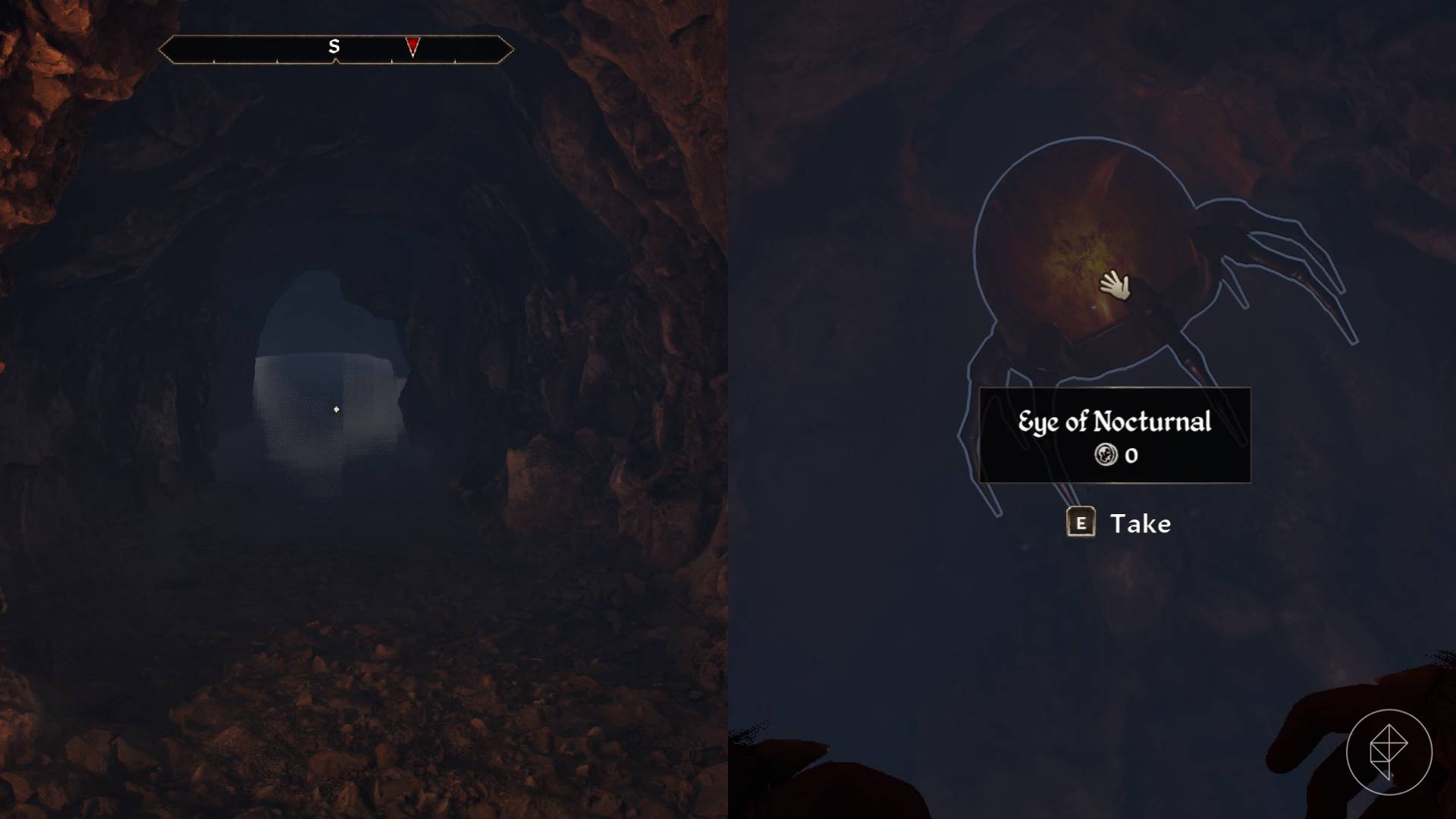 With the eye in your inventory, leave the cave and return to the Nocturnal Shrine. Interact with the shrine to return the Eye of Nocturnal, complete the “Nocturnal” quest, and receive the Skeleton Key as a reward.