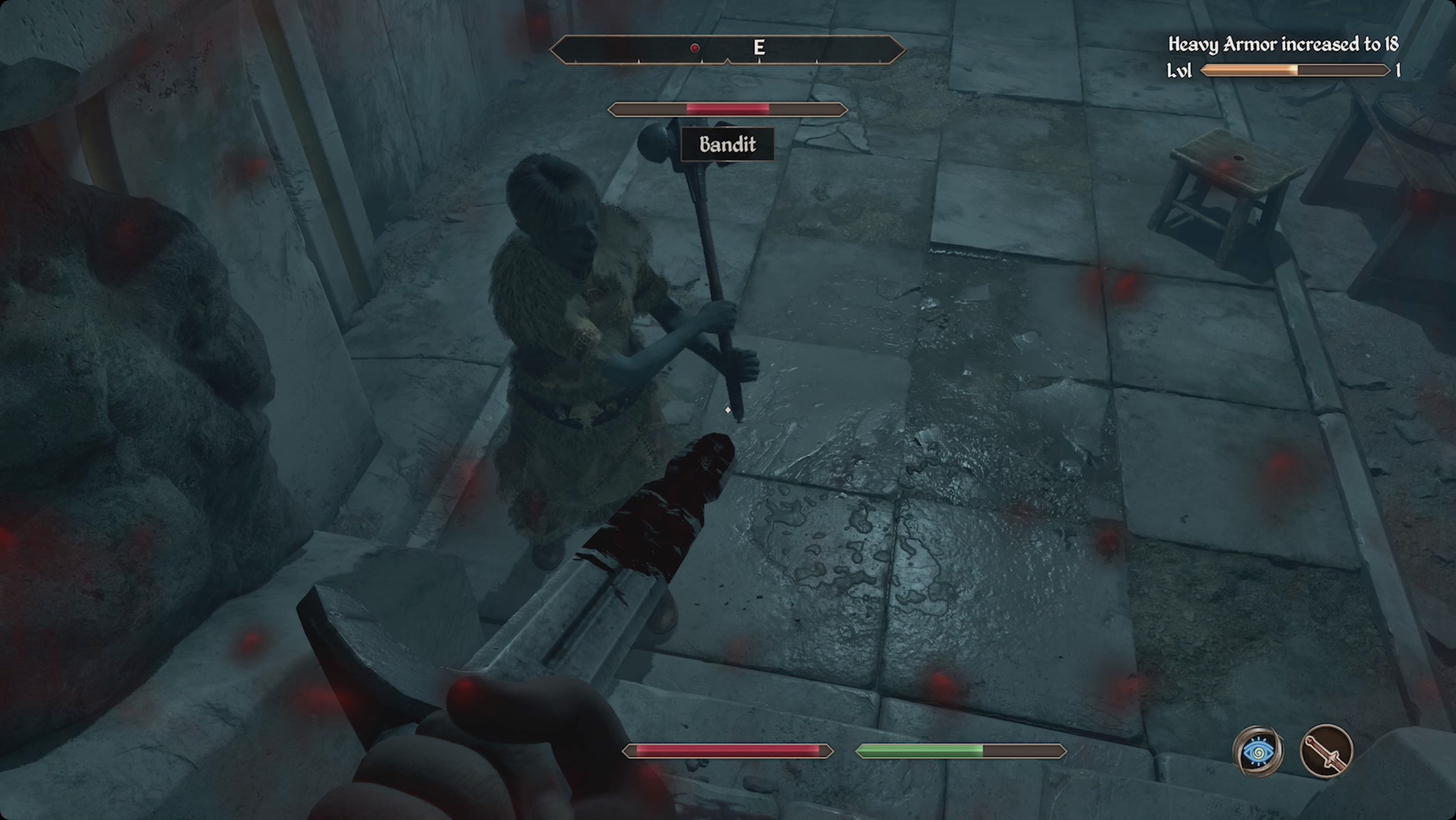 Oblivion Remastered fighting a bandit while the Heavy Armor Minor Skill increases