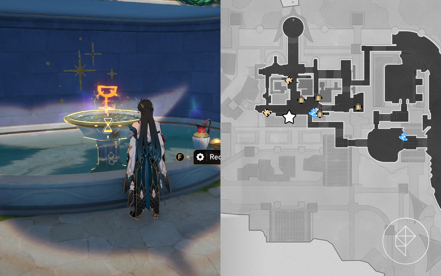 If you don’t want to deal with any of that, you can just follow our guide and interact with the fountains that we do. Note that these fountains can only be activated once per day, the unmarked fountains need to remain blank, and you don’t actually want to pray to the fountains — only get the symbols to show up. If you accidentally activated any, you’ll need to wait until the next real-world day to try again.