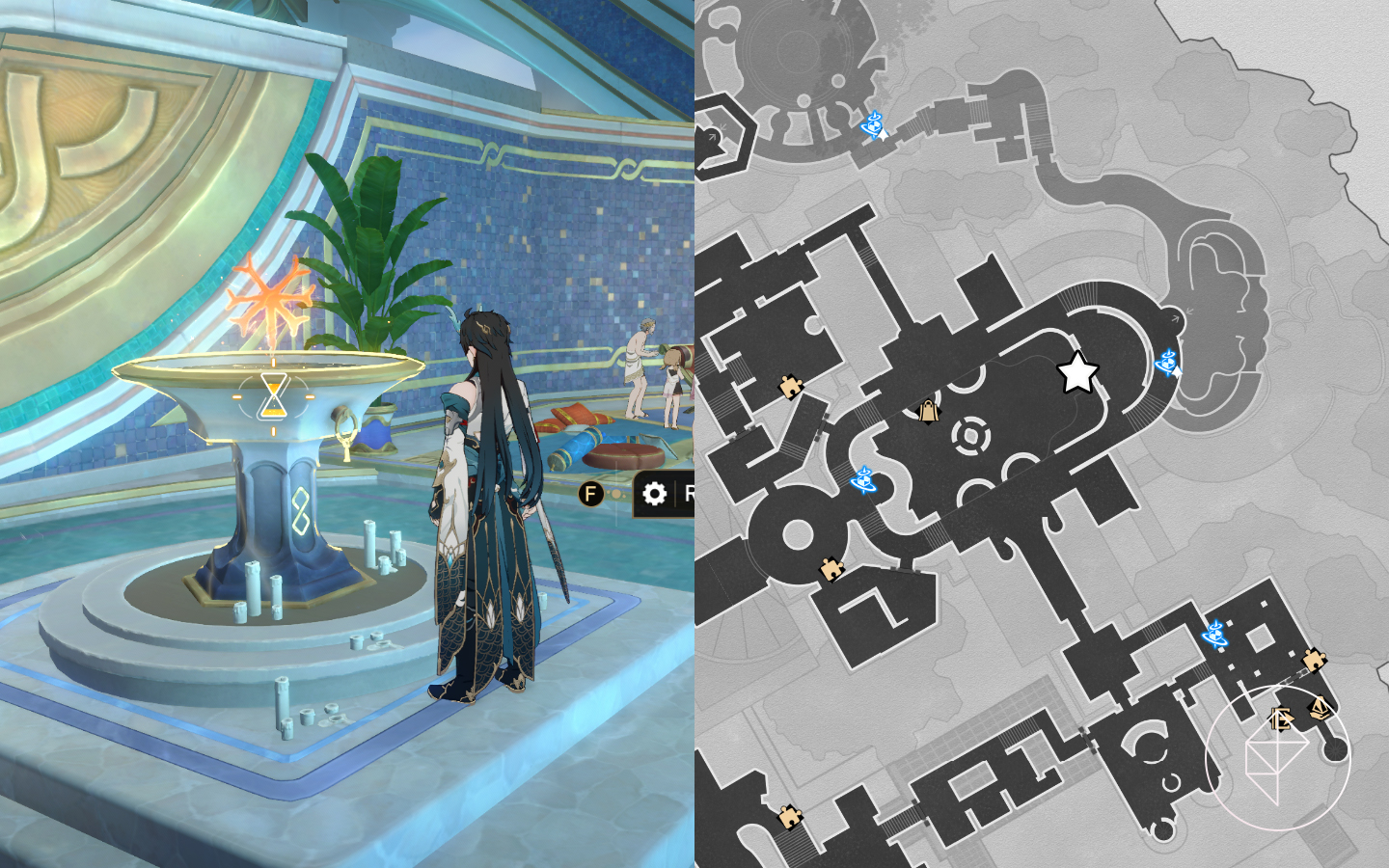 If you don’t want to deal with any of that, you can just follow our guide and interact with the fountains that we do. Note that these fountains can only be activated once per day, the unmarked fountains need to remain blank, and you don’t actually want to pray to the fountains — only get the symbols to show up. If you accidentally activated any, you’ll need to wait until the next real-world day to try again.