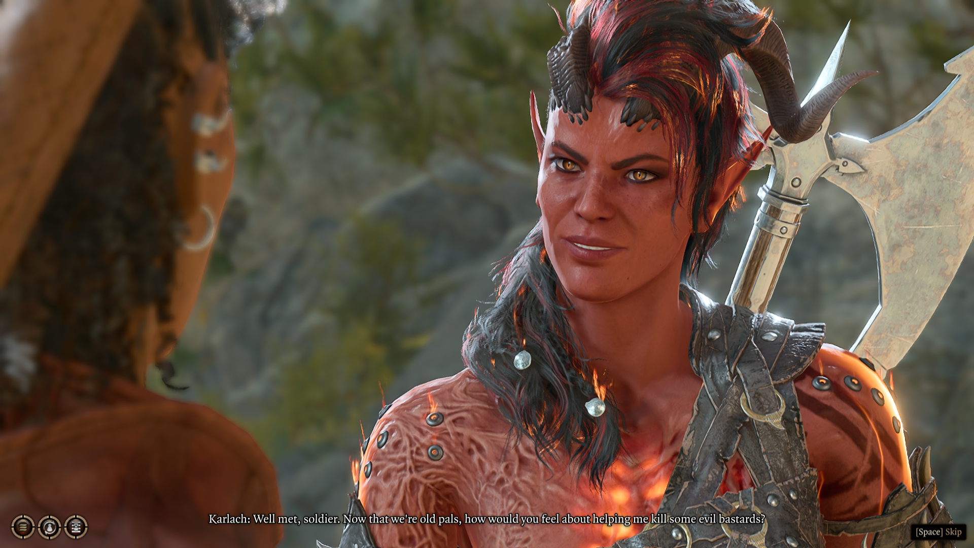Lae’zel and Orpheus departed for their space crusade without asking me to accompany them. Standing alone on the docks of Baldur’s Gate, I pondered my fate. Having an Illithid body apparently comes with the Illithid instinct to murder, enslave, and eat brains (except that, during the game, you meet one friendly Illithid who is immune to the worst impulses of his species), so I was again put in front of a choice: Would I keep living, risking to lose what was left of my personality and perhaps one day hurt the people I love, or would I take my own life? I decided on the latter, as I was firmly set on the hero path by then, and it made no sense to step away at the end. Again, this selfless act was ignored by my romance partner, who watched me plunge a knife in my guts with no reaction. Also, without me, Karlach didn’t have anyone to convince her to go back to Avernus before her engine overheated (except, you know, the other eight people she had shared this long and crazy adventure with), so she immolated. The end. Roll credits.