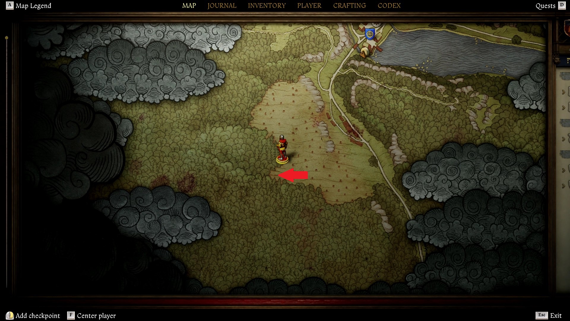 I’ve been exploring the second region of KCD2 for many hours now, so visiting this little memorial myself meant forking over 200 groschens to hop on a coach wagon. You’ll find it not far from the mill southwest of Semine, just beyond a clearing.