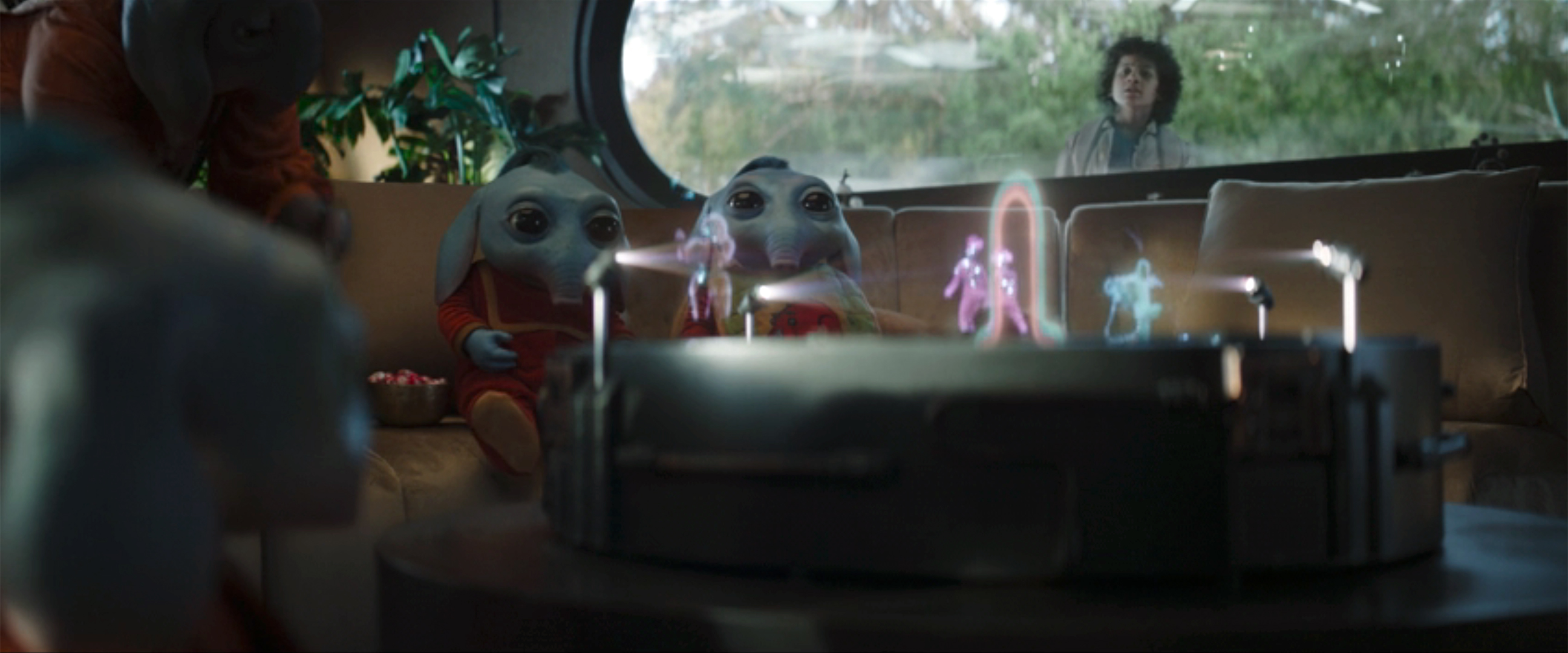 Most recently, Star Wars: Skeleton Crew paid homage to the Star Wars Holiday Special, confirming that children across the galaxy love watching hologram circus performances. Chewbacca’s son Lumpawaroo (“Lumpy”) becomes entranced by a holo kids’ show in the holiday special, and a re-creation of that program appears in episode 2 of Skeleton Crew. Neel’s brothers Jobo, Jorko, and Tuloo sit around the family room glued to a holo-projection that’s lifted straight out of the holiday special. Then, in episode 4, Jod Na Nawood discovers a hologram puck that features a clip of those same circus performers.