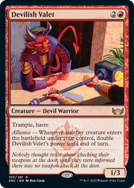 Unique to Streets of New Capenna is Wizards’ take on the box topper, a promotional card that comes in every booster box. Gala Greeters, which you can see above will be the sole inclusion, though every language and region will have their own version of Gala Greeters, making this card an international collectible.