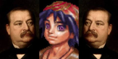 Bear with us here: Grover Cleveland is the only president to serve non-consecutive terms. He was our 22nd president, and after some time away, came back as our 24th president. Serge is the protagonist we start with in Chrono Cross. He swaps into Lynx’s body for a while somewhere in the middle, but then his true form returns – a non-consecutive party leader!