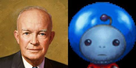 No, this isn’t another “they look similar” entry. The reason Eisenhower and Starky are two peas in a pod is this: NASA was established by Eisenhower’s signature, and Starky is alien that NASA’s endeavors might one day discover. Also, they look similar.