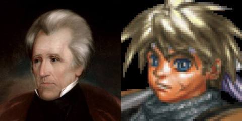 Glenn is a skilled swordsman, notable for his ability to wield the legendary blade Einlanzer. In fact, he can get two versions of the sword and DUAL-wield them! Andrew Jackson was likewise known for DUEL-wielding; he infamously killed the attorney Charles Dickinson in a duel.